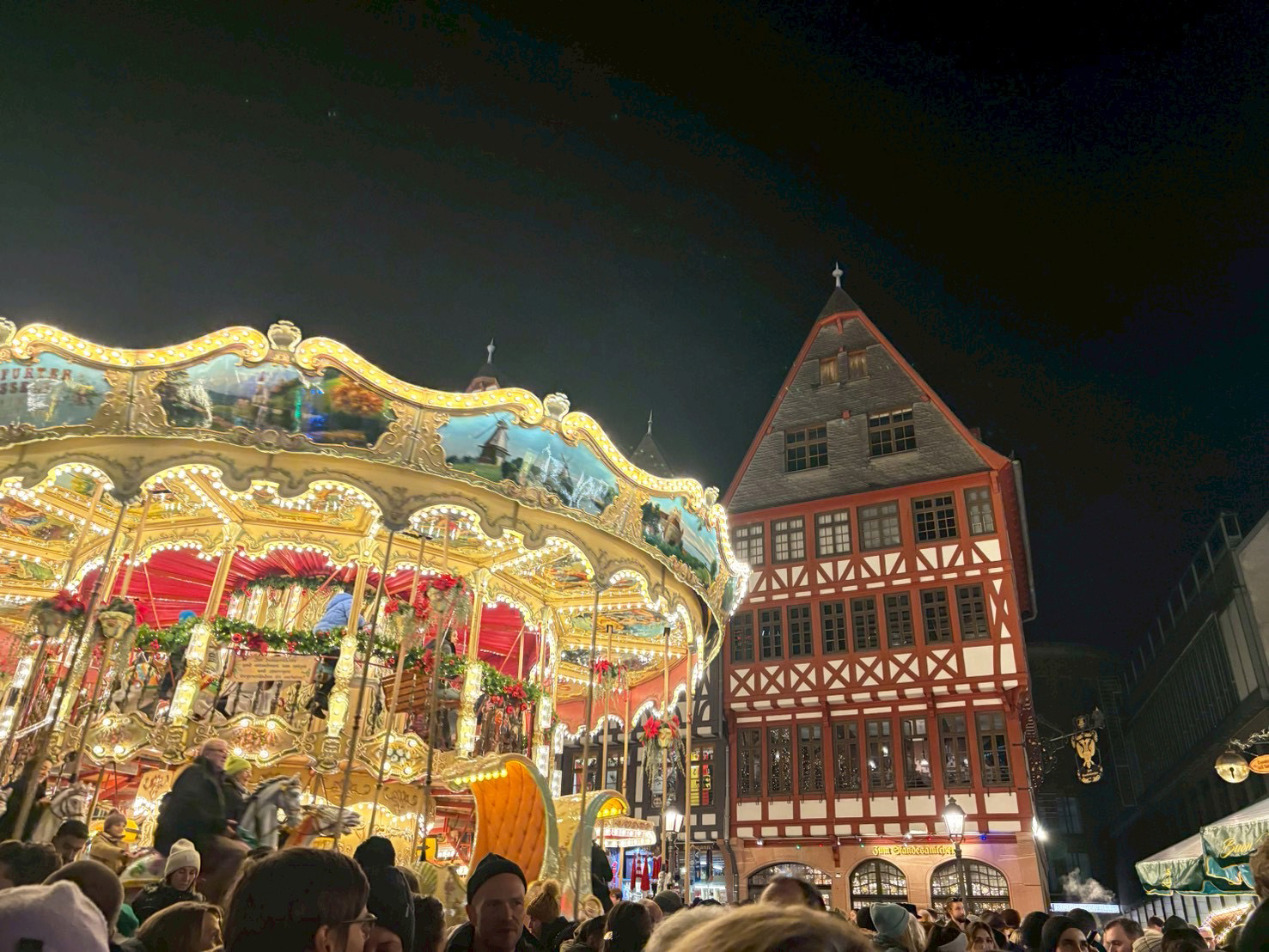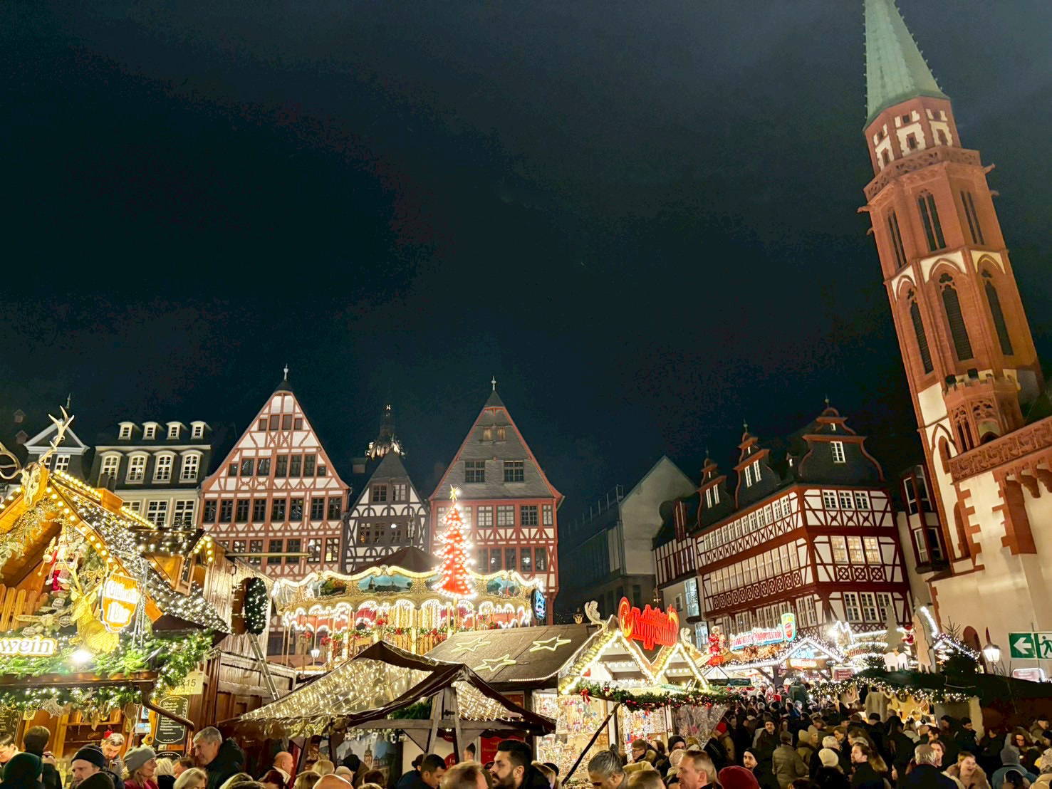 街の中心にあるレーマー広場のクリスマスマーケットが有名。中世の街並みを模した広場なので、ドイツならではの雰囲気を味わうことができます。