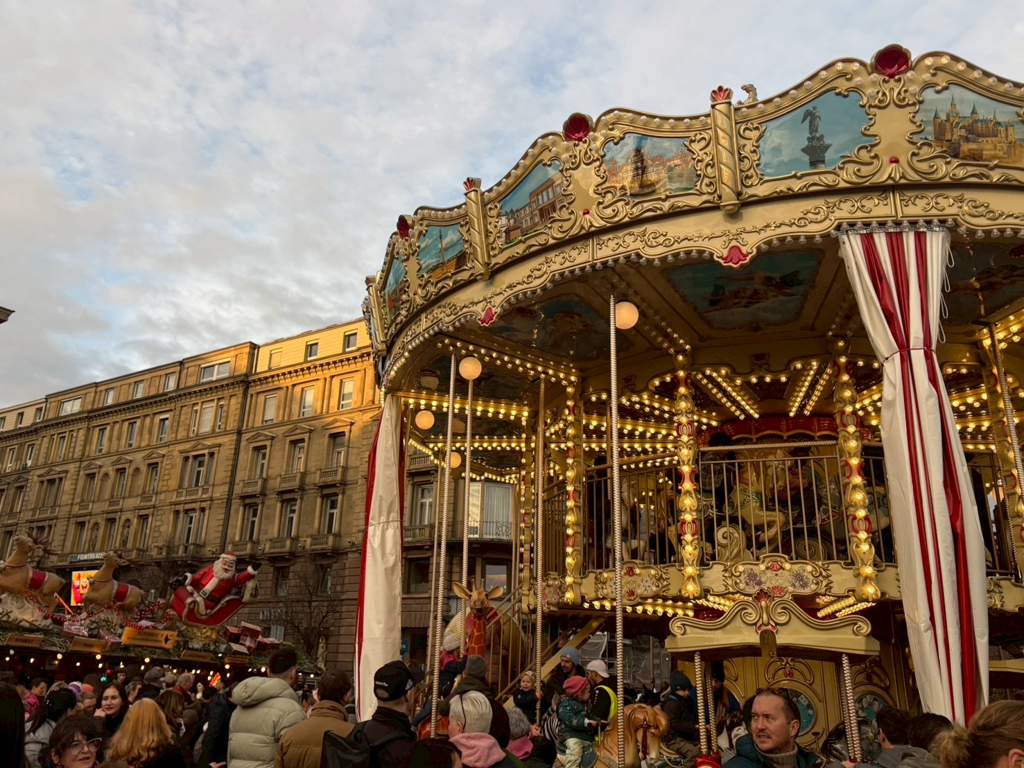 大都市のクリスマスマーケットには移動遊園地も登場