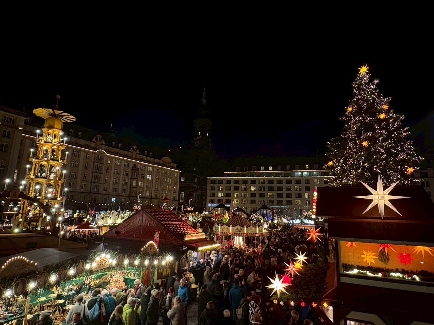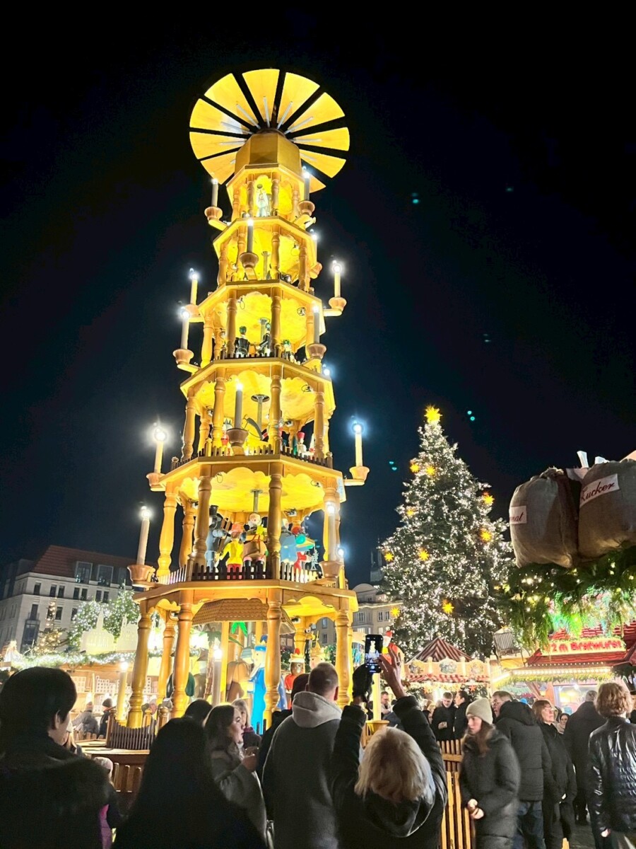 ドレスデンは世界最古のクリスマスマーケットの開催地であり、ドイツ三大クリスマスマーケットの一つ。15メートルほどの美しいクリスマスピラミッドは訪れる人々の注目の的です。