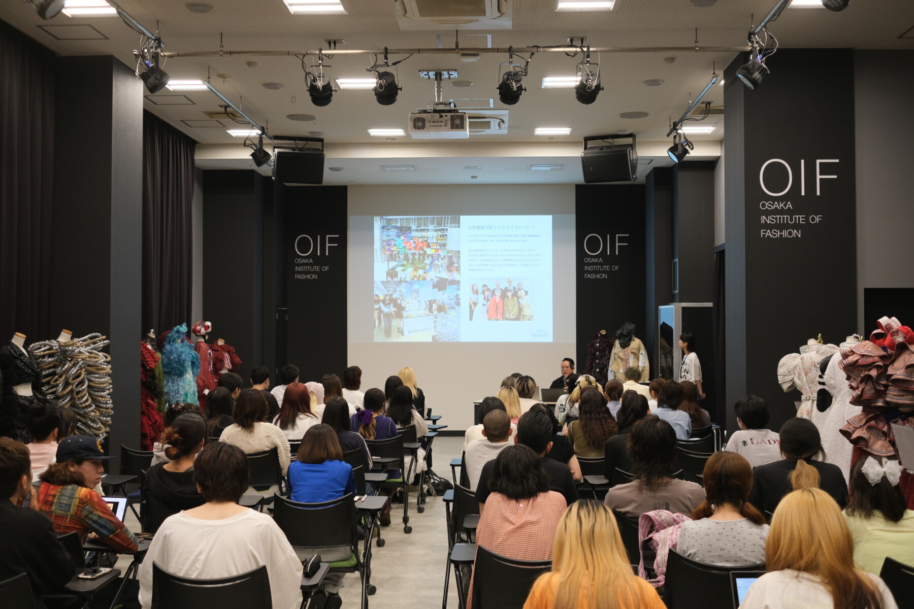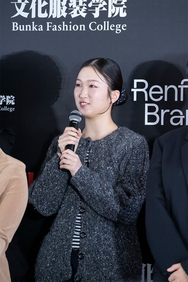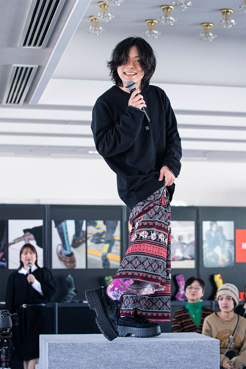 「オファーをいただいた以上は全力で取り組みます。(バックパネルにプリントされたOIFと東京の文化服装学院のロゴの数を比べて)なんだか既に大阪が押されている気がしているので、大阪文化の皆さんは積極的に行動して頑張りましょう!」(京極風斗)