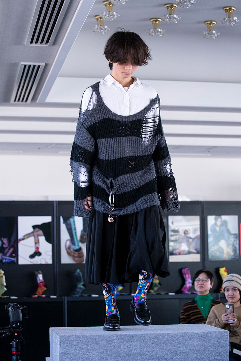 靴下は足に履くものである以上、踏まれて当然、汚くて当然のものとして解釈し、毒をテーマにデザインを制作。「『見た目の割には臭くないね』となれば、幸いです」とコメント。