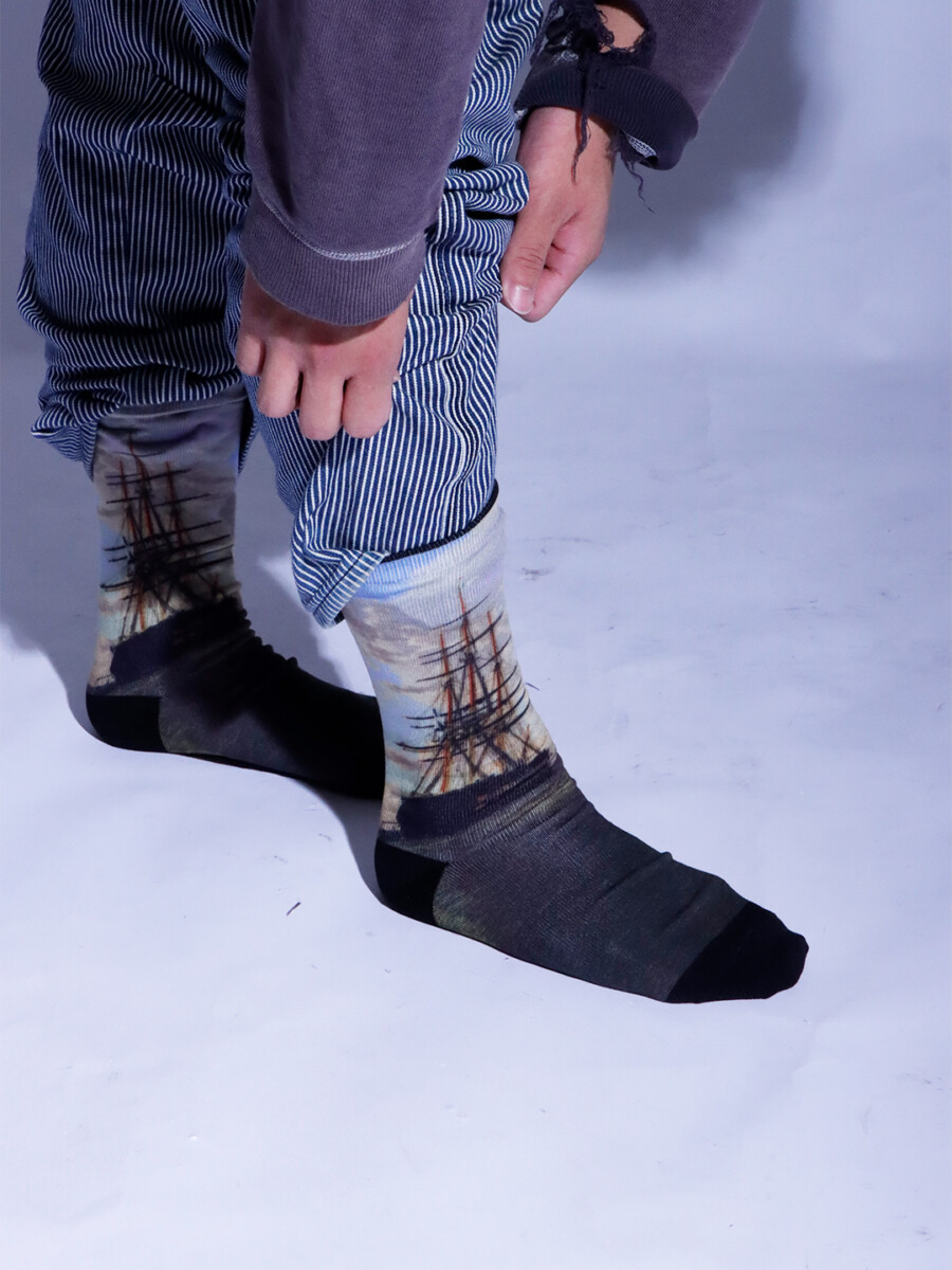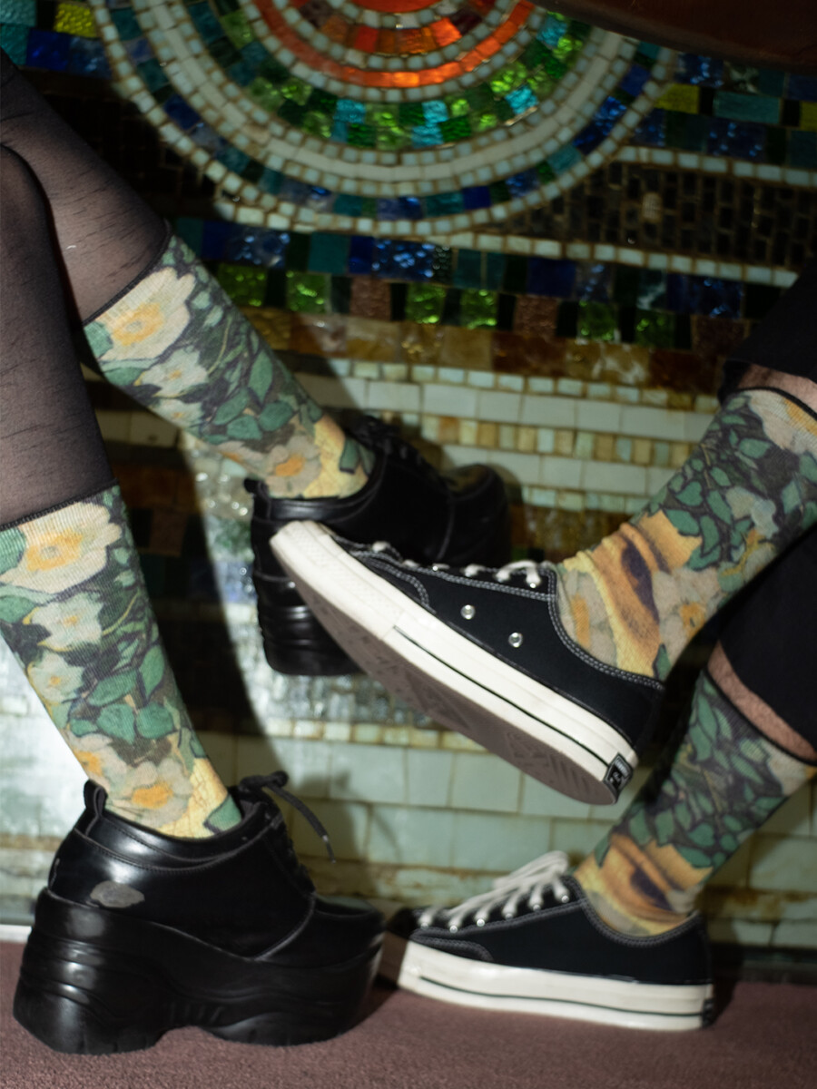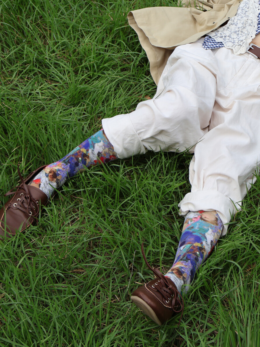 世界的名画から着想を得た、存在感のあるデザインが印象的なソックス。芸術性と遊び心が両立し、履く人の気分を高めてくれる。