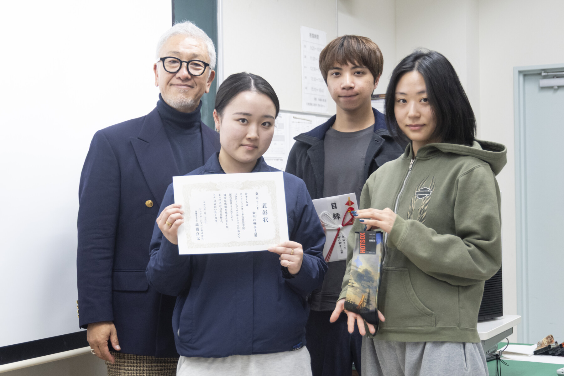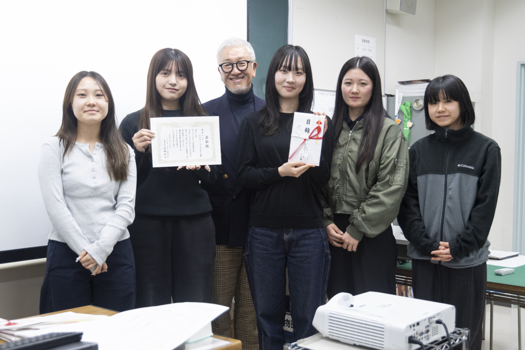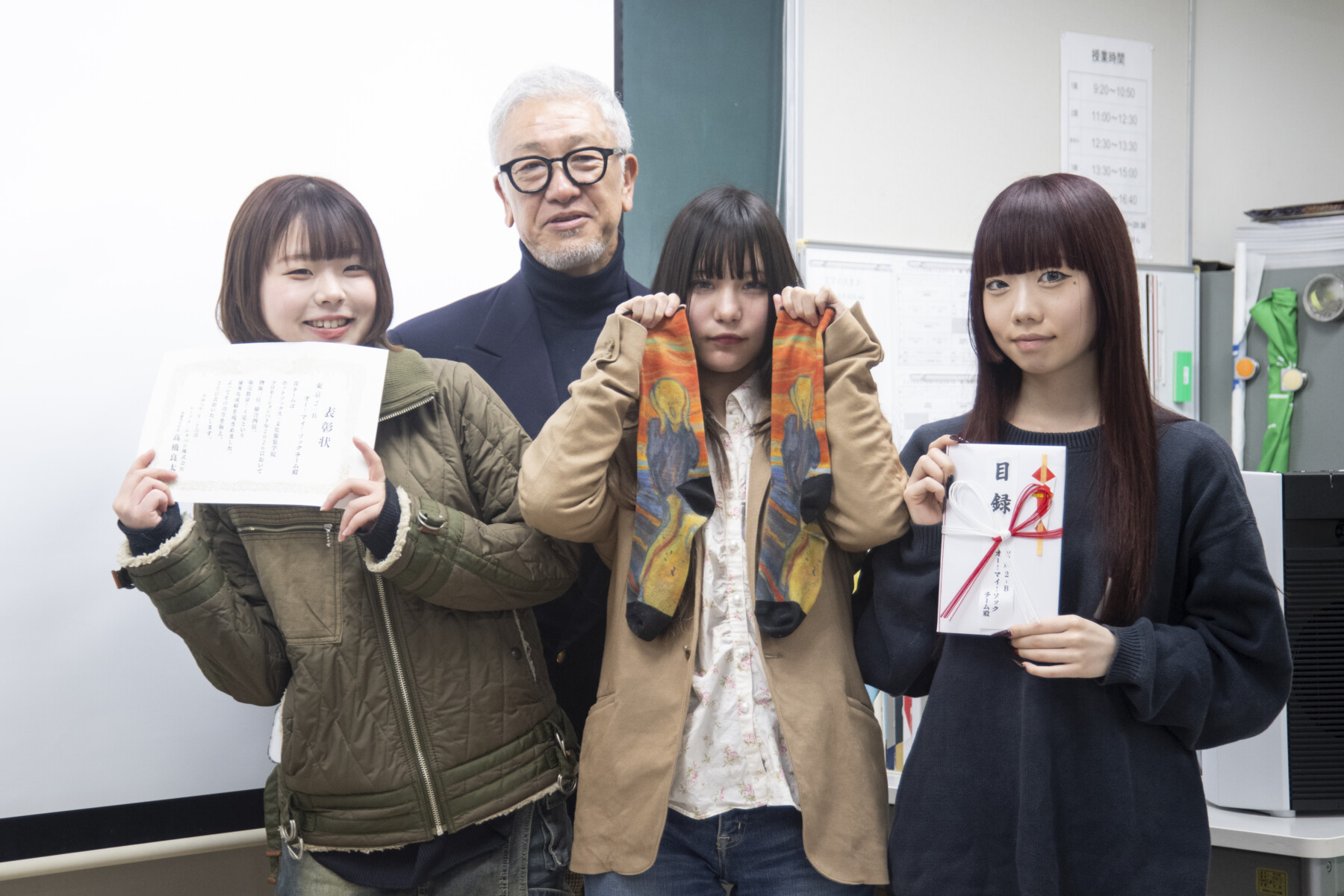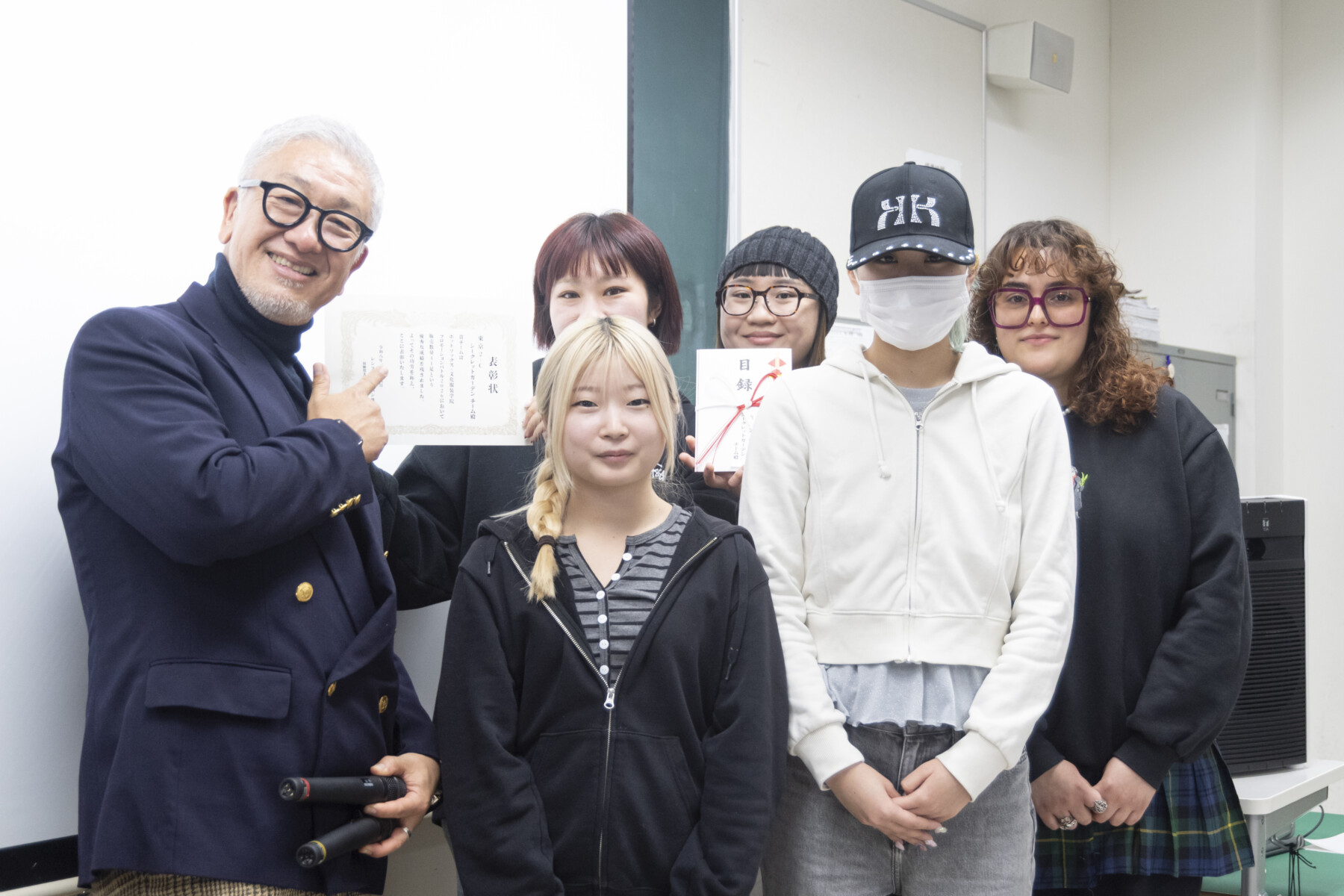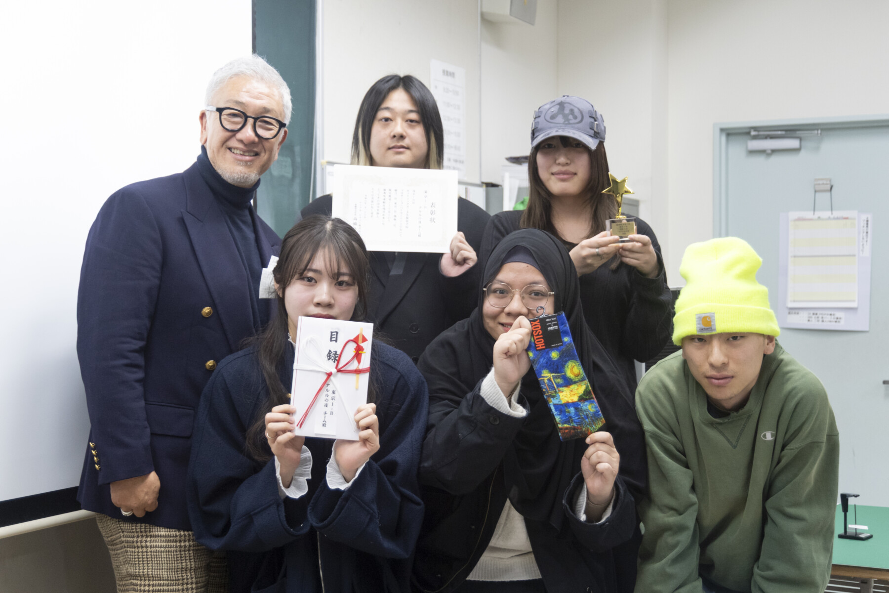 そしてついに2026年1月下旬、両校でその結果発表と授賞式が開催。文化服装学院には東京チームのアンバサダーを務めたお笑いコンビ、エレガント人生の山井祥子さんが、OIFには大阪チームのアンバサダーである9番街レトロの京極風斗さんがそれぞれ駆けつけ、プロモーションの成果が発表された。