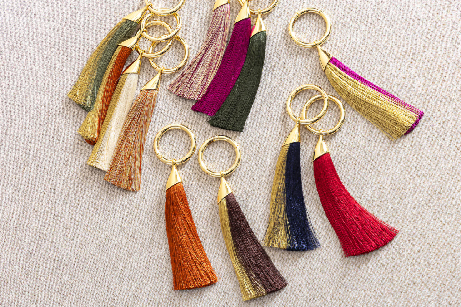 京都を拠点にした縫い糸や刺繍糸の専業メーカーであるフジックスが手がけるアクセサリーブランド、イトタス(ito+)から、タッセル型の新作バッグチャームが発売された。