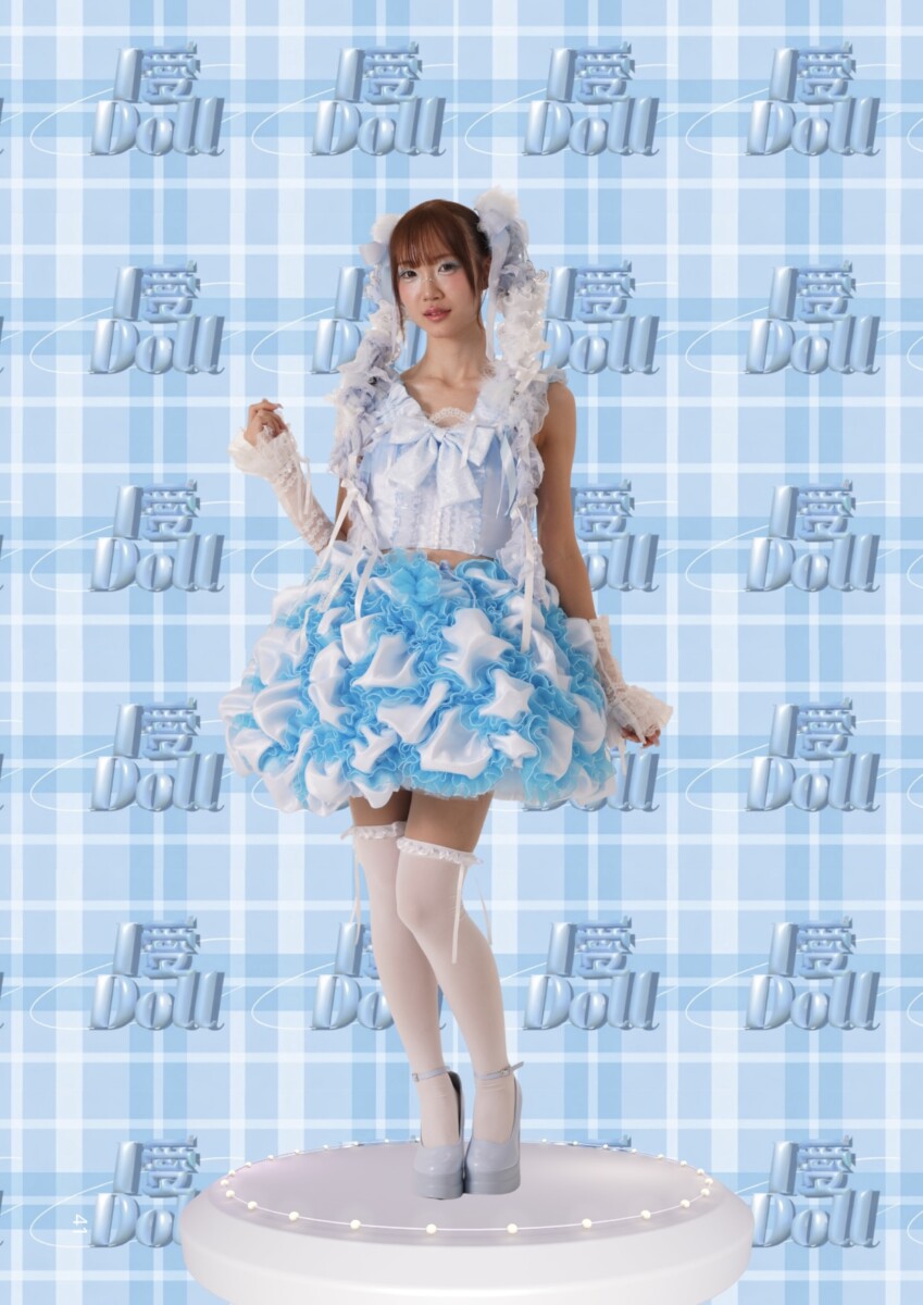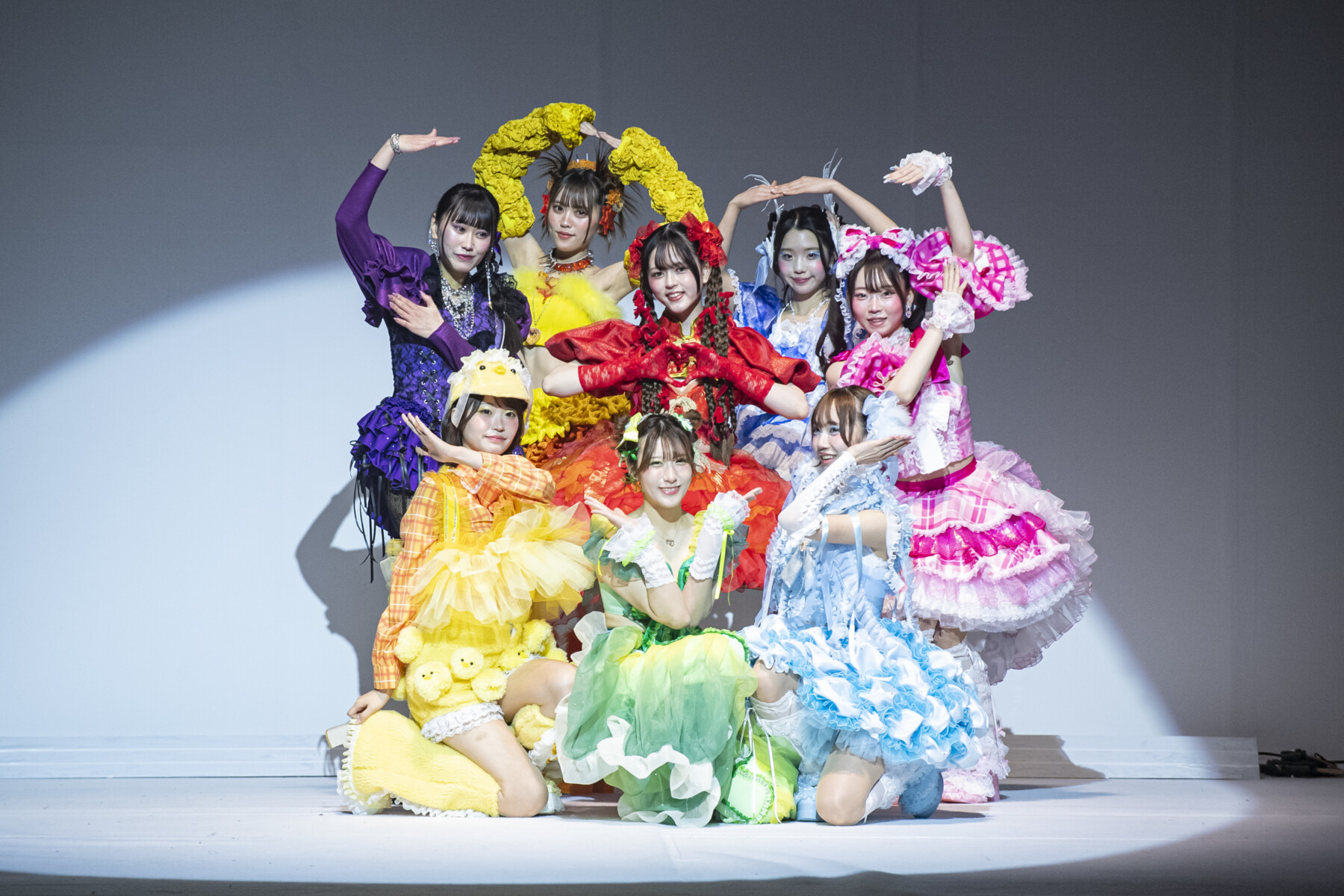テーマは「dessert」。幼い頃のパティシエールになりたかった夢を重ね、デザートをモチーフにしたコレクションです。実際にモチーフにするデザートを食べながら制作を行い、デザインに落とし込んでいます。ランウェイではコンセプトをダイレクトに伝えるため、大きなフォークを自作し演出に取り入れました。また、素材にもこだわり、プリントの上にストーンで柄を重ねたり、発泡プリントと箔プリントを組み合わせるなど、実験を重ねて質感を作り込みました。細部ではフリルも巻きロックを使わず、すべて三つ折り端ミシンで仕上げています。パティシエールはただ作るだけでなく人に振る舞う存在だと考え、ショーを通して見た人が幸せな気持ちになれるよう意識しています。制作自体もとても楽しく、自分のやりたいことを素直に表現できたと感じています。今後も衣装制作は続けていく予定なので、ぜひInstagramをみていただけたら嬉しいです!【Instagram:@morico_8】
