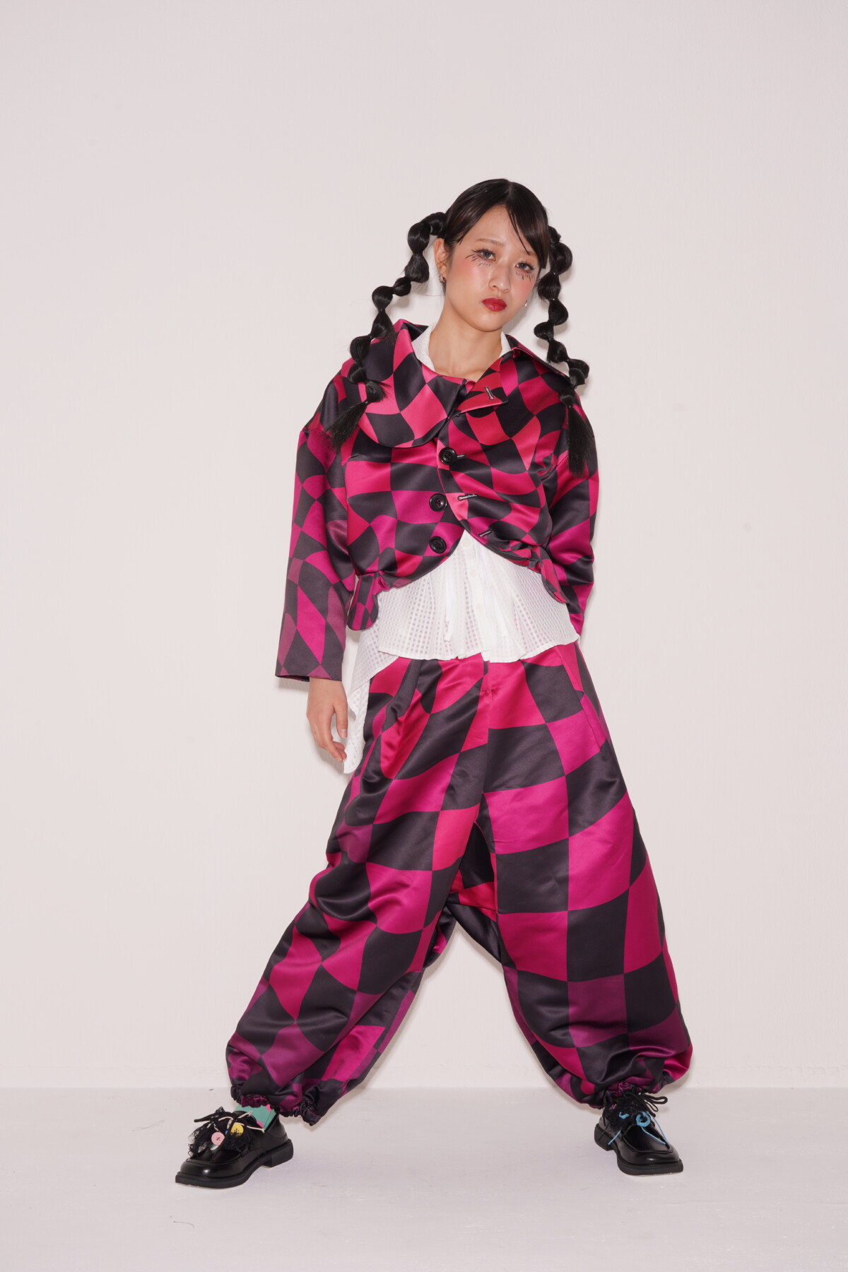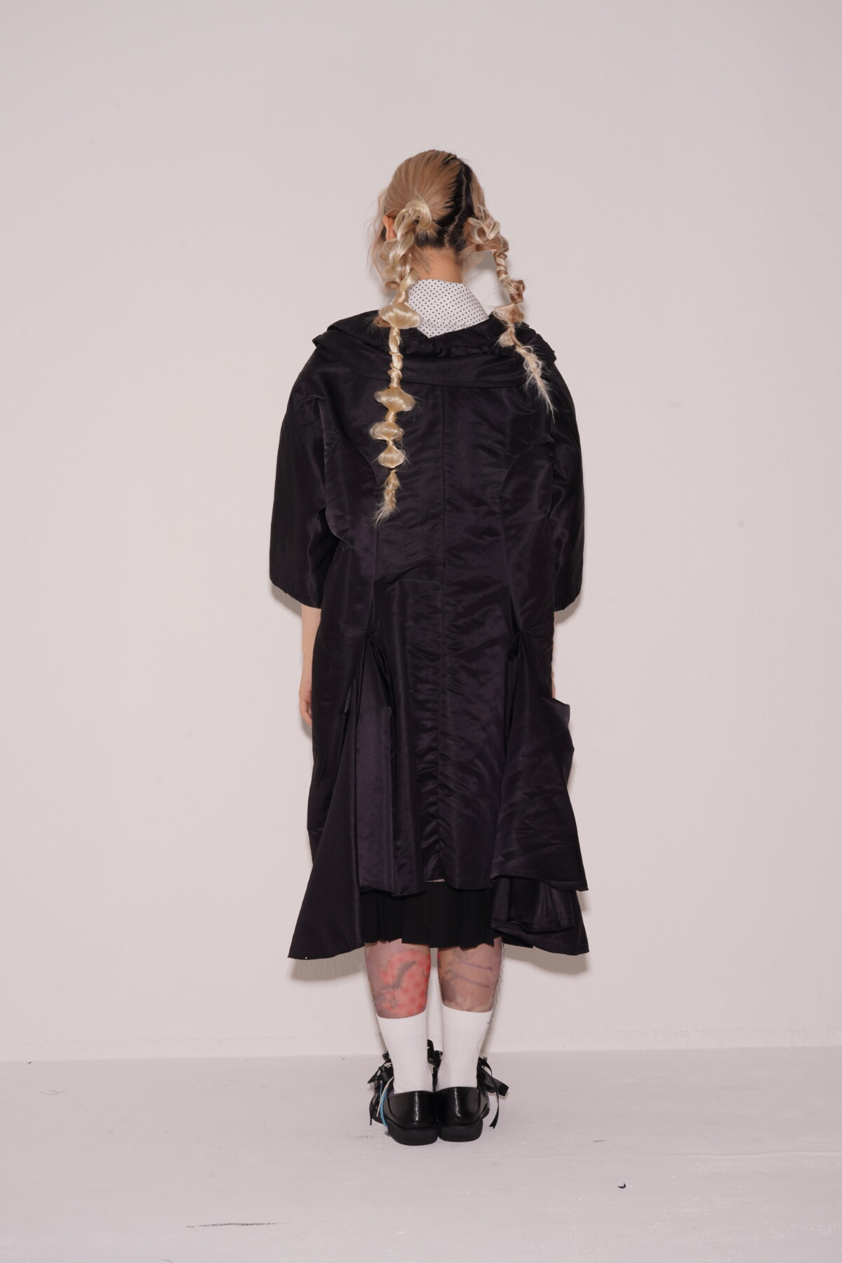 テーマは「異質の共存」。相反するものが混ざり合う、現実と理想の交差点を着想源にしています。学校での生活と個人的な生活、その境目を軸にしてデザインに落とし込みました。最後のコレクションということで“やりたい放題”でいこうと思い、自分が好きなブランドを片っ端から調べて、コレクションを分析・再現する“モードコピー”をするところからスタートしました。そこから仮縫いを重ねて、一つずつルックの形やデザインを決めていきました。普段も着用できるカジュアルさをベースにしつつ、違和感のない派手さを加えています。好きなものや、やってきたことを全部詰め込みました。好きなブランドの研究や、自分のやりたいことをとことんやりきって、1年間で27アイテム制作。振り返ると、本当に楽しくて有意義な一年だったと感じています。【Instagram :@jujujujujy_】