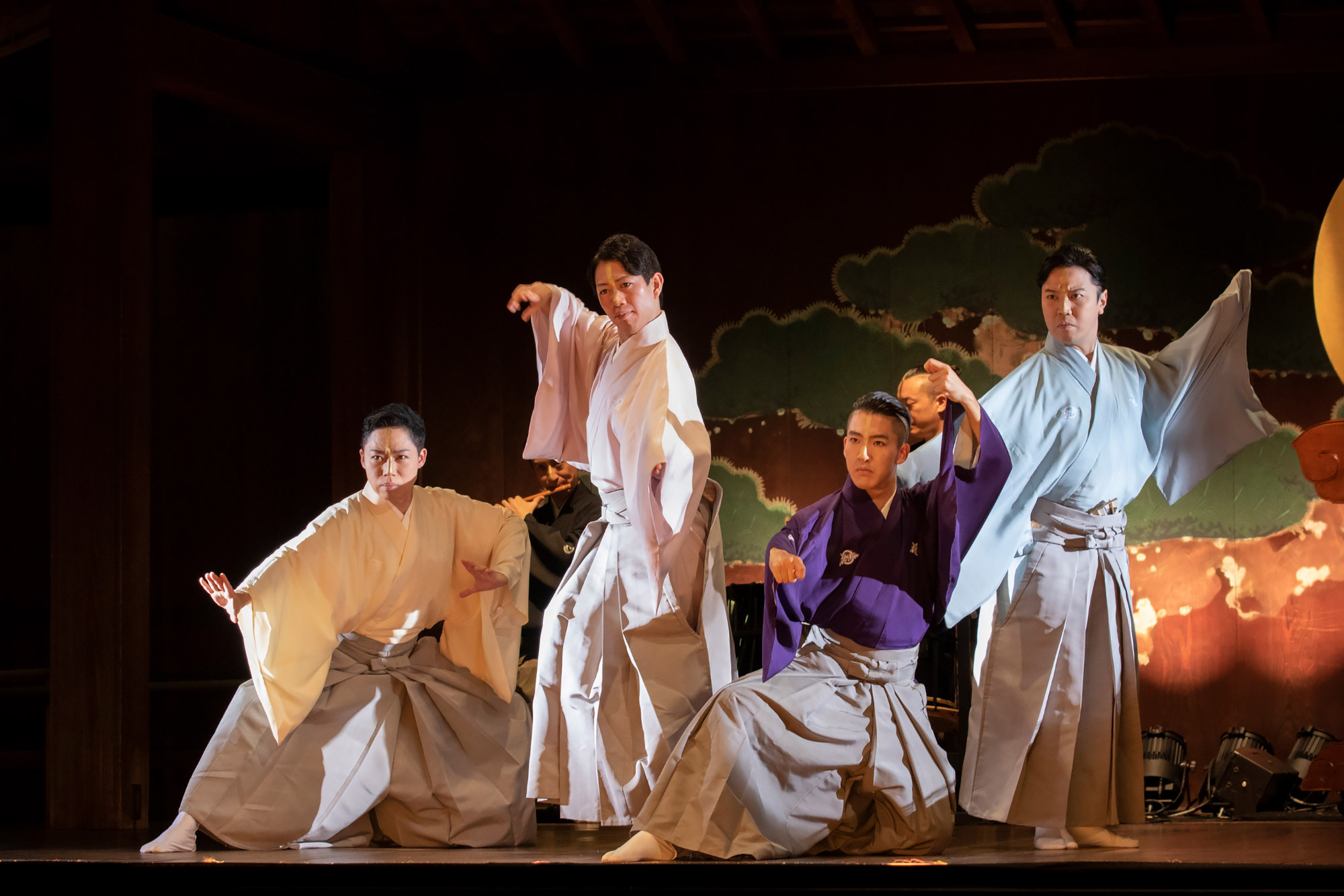 1部は、日本舞踊家の花柳源九郎さん、藤間涼太朗さん、右近さん、壱太郎さんによる、青龍、朱雀、白虎、玄武という四神のダイナミックな舞踊劇。