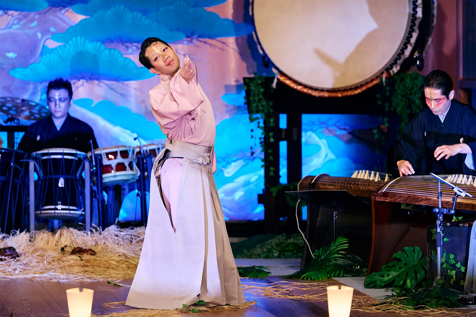 伝統の技と様式を生かし、そしてそのフレームを越えて、映像やファッションなど多種多様なジャンルの仲間たちと一つの舞台作品を創り上げた。