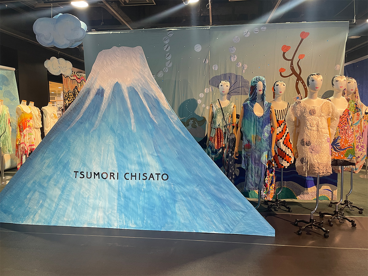 時を同じくして、Rakuten Fashion Week Tokyoのメイン会場である渋谷ヒカリエの特設会場では「ツモリチサト」のこれまでを物語る100体以上のルックや映像、プロップスも展示され、時を超えて様々な津森さんのクリエーションを感じられる空間に。そこにある一体一体にシーズンなどは記されていないのですが、あれもこれも見覚えのあるものばかり。同僚たちと「この服、撮影させてもらったよね!」「あれは表紙になった服だね」と記憶がよみがえってきたのです。津森さんがつくってこられたものは、記憶に残るものなのだとあらためて気づかされた瞬間でした。
