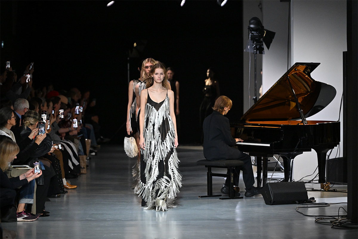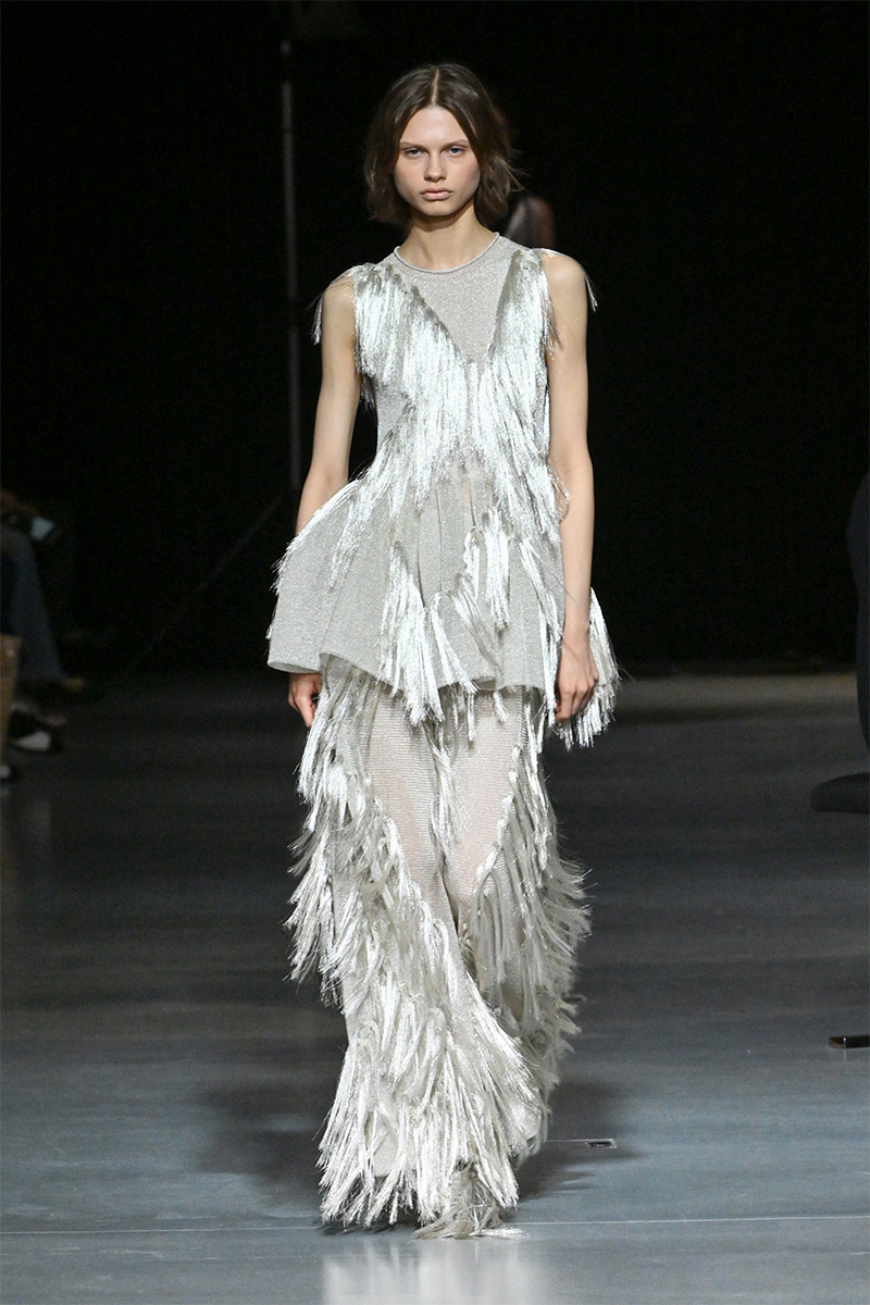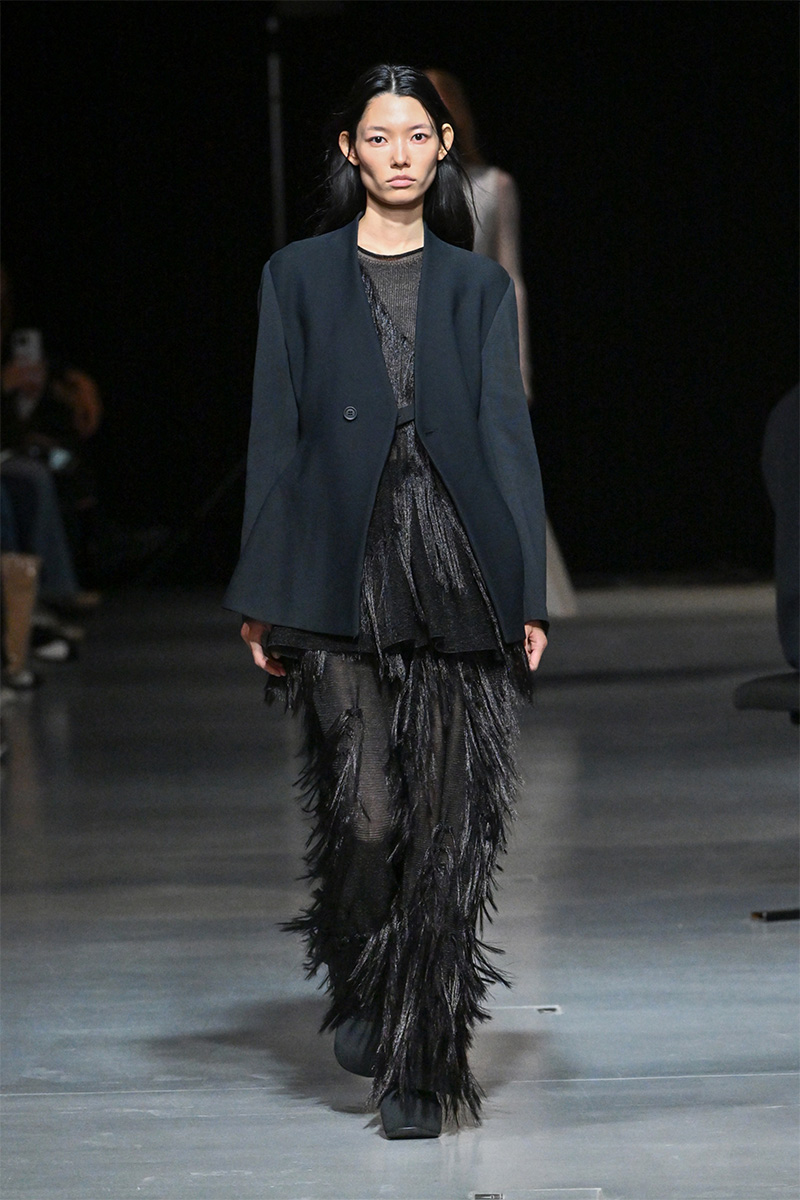 動くたびに揺らめくフリンジがダイナミックな動きを演出していて、とても素敵でした。どこまでも進化を続けるCFCLのクリエイション、今後も楽しみです!