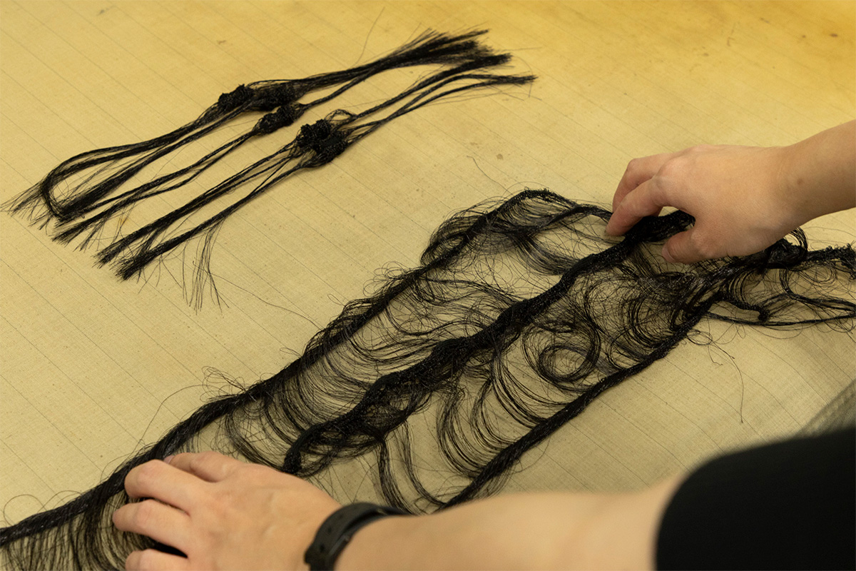 そして今回は、CFCLのものづくりを訪ねて、CFCL Knitting Lab.を取材させていただきました。ラボは、コンピュータープロミングによるものづくりの研究・開発を行う拠点。そして、数量の少ない生産や一部コレクションピースの手仕事なども作業されていました。ちょうど取材させていただいた時のフリンジを、なんと10月にパリで発表された2026年春夏 VOL.11コレクションで発見!