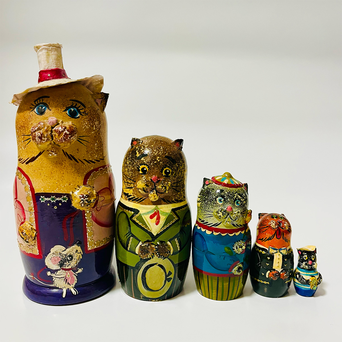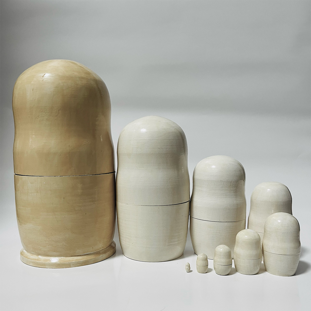 中でもお気に入りのいくつかをご紹介。真っ白なマトリョーシカは、メゾン マルジェラのもの。っぽいですよね。こんなハイブランドがマトリョーシカを制作したことに喜びを感じたのを覚えています。長く飾っていたら、いちばん外側が日焼けしてしまいましたが、本来入れ子と同じ真っ白ののっぺらぼうです。