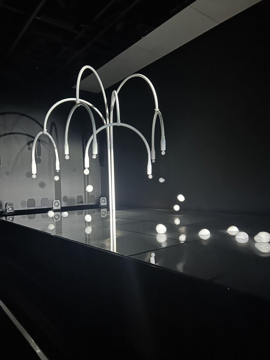 こちらは村上あずささんとアレキサンダー・グローブスさんによるユニット、A.A.Murakamiによる作品。木のような彫刻の枝先からは、煙が中に入ったシャボン玉が出てきます。いくつものシャボン玉が床を滑りながら台の端や動いている途中で割れ、中の煙がふわっとでてくるのですが、永遠に見てられると思うくらいなんだか気持ちいい。今までみたことない不思議な景色で面白かったです。