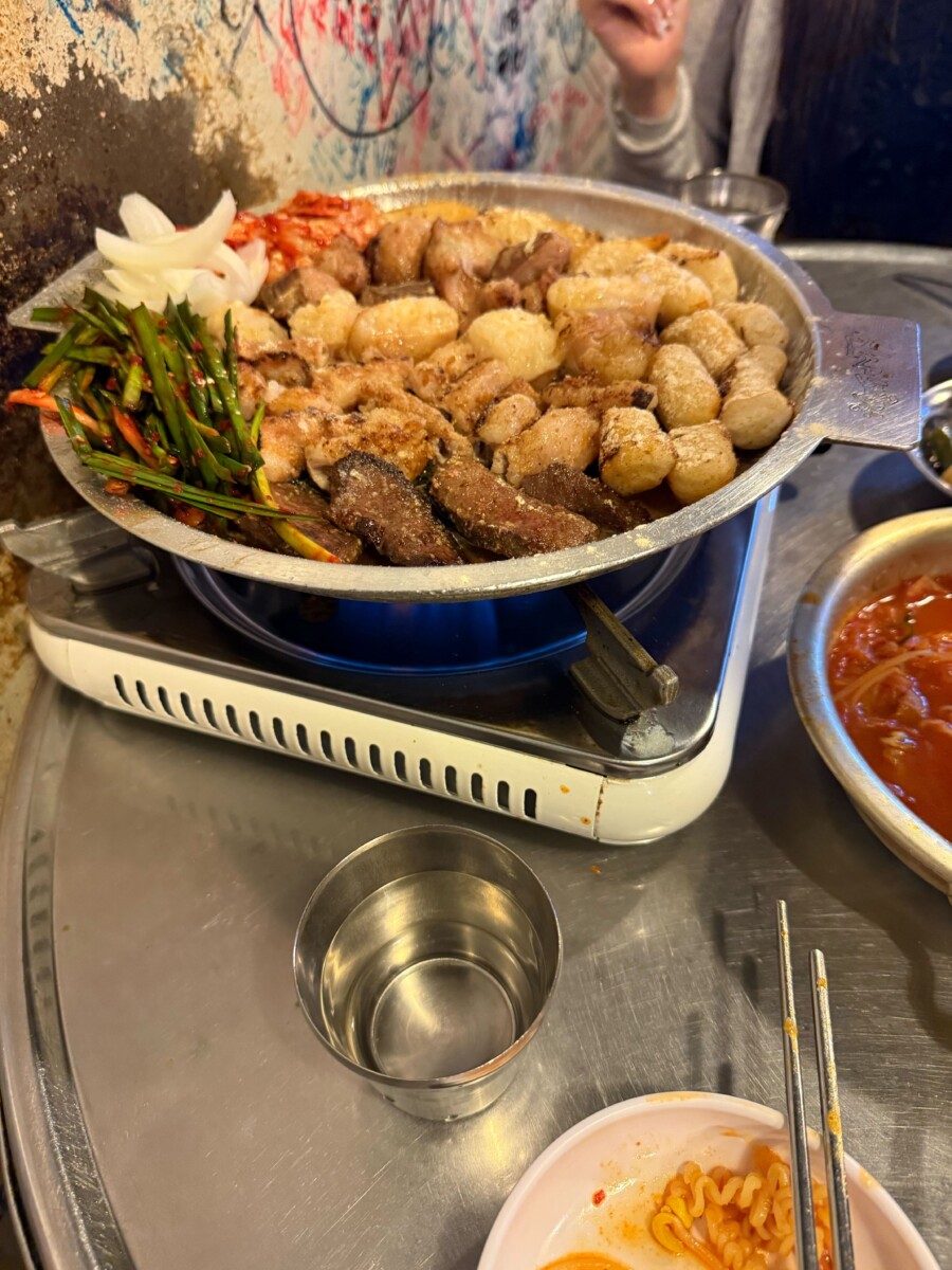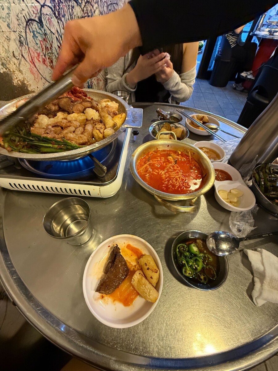 ここは、ソウル市内に支店が数店舗あるらしいのですが、新沙というエリアはカフェなども多く、夜遅くまで楽しめる場所✨韓国にはホルモン屋さんがたくさんありますが、どこに行こう、と迷われた方は、ぜひここを訪れてみてください!