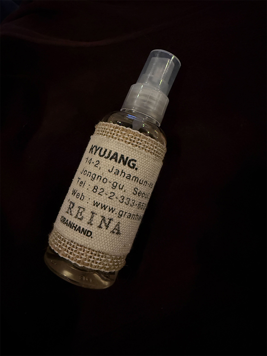 瓶に入っているのではなく、プラスチック性のスプレータイプというところも持ち運びに便利で嬉しいポイント。そして、ラベルにはオリジナルのスタンプを押してくれるらしく、私の名前が入っているところも特別感があります✨