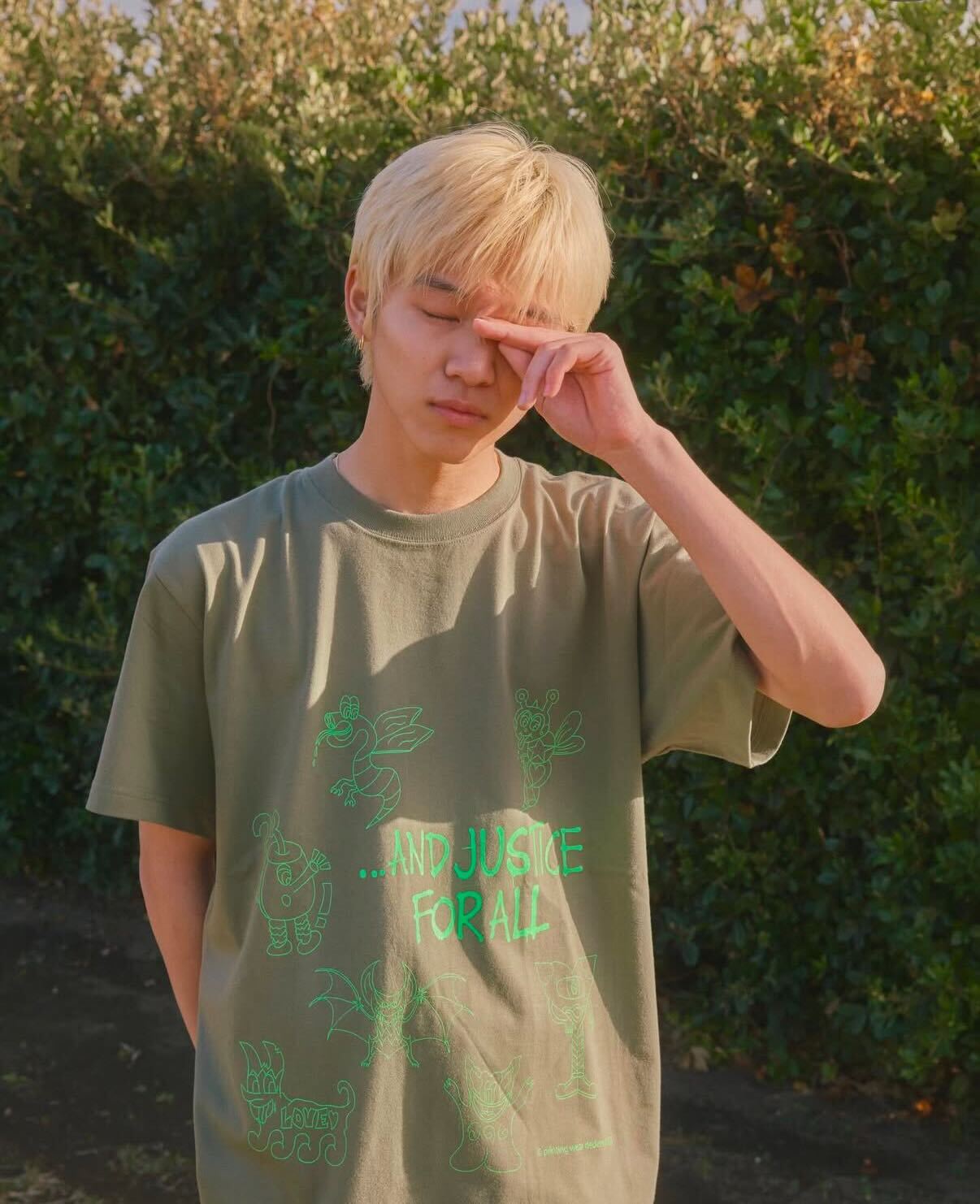 私がゲットしたTシャツは、カーキ色をベースに、蛍光グリーンでオリジナルキャラクターがプリントされているもの。この冬は、柄もののロンTなどとレイヤードしたり、パーカーからチラ見せをした着こなしを楽しめたらと思っています👀👍🏻