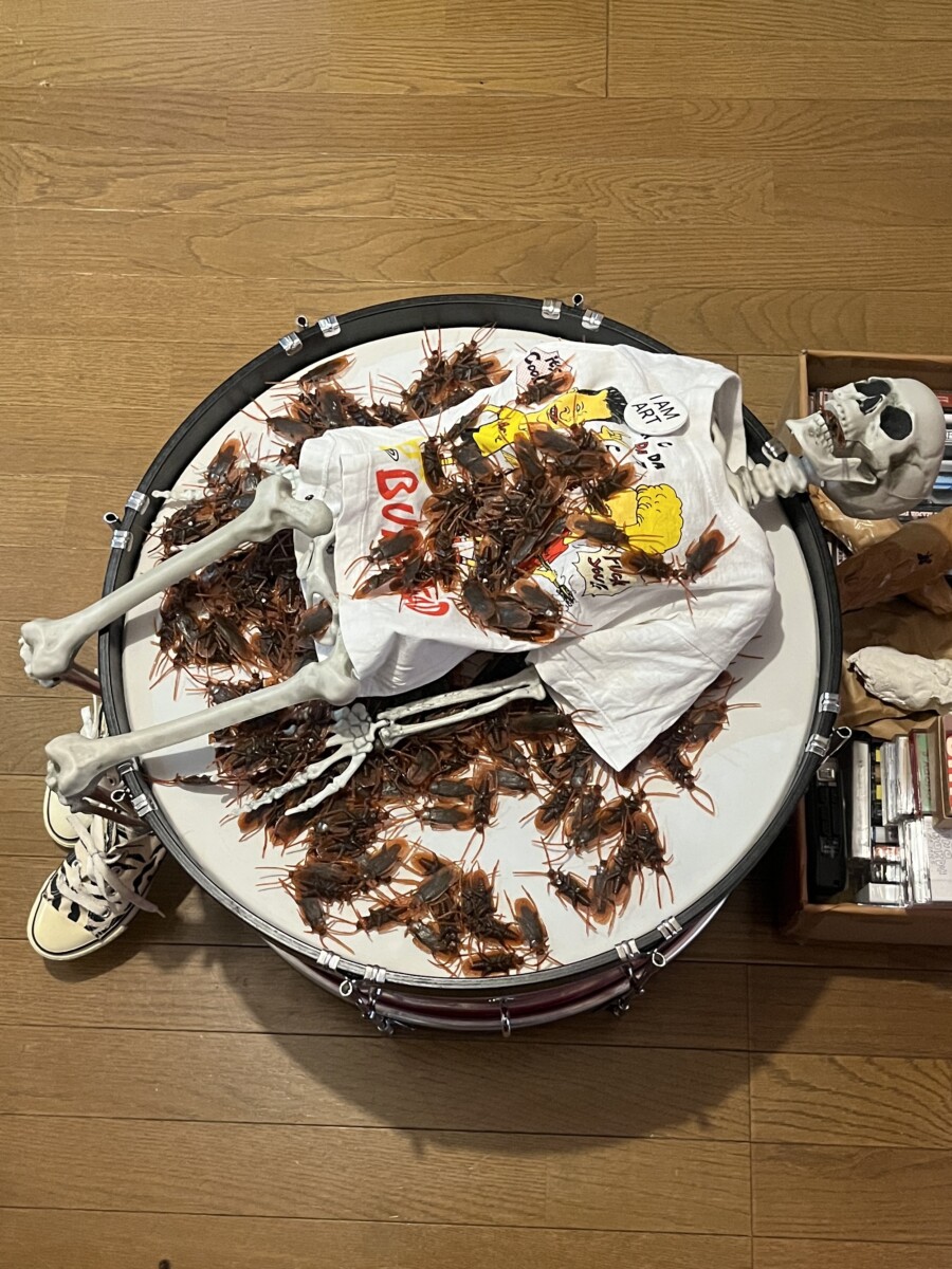 なぜかドラムの上に散らばる大量のゴキブリにヒヤリ
