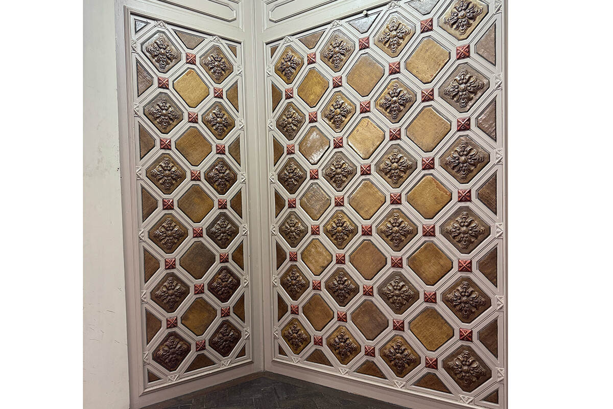 入口からロビーが一直線に伸びる内部。限られた敷地で客席を確保するための工夫が、動線にも表れている。タイル装飾に加え、スペイン風の意匠も
