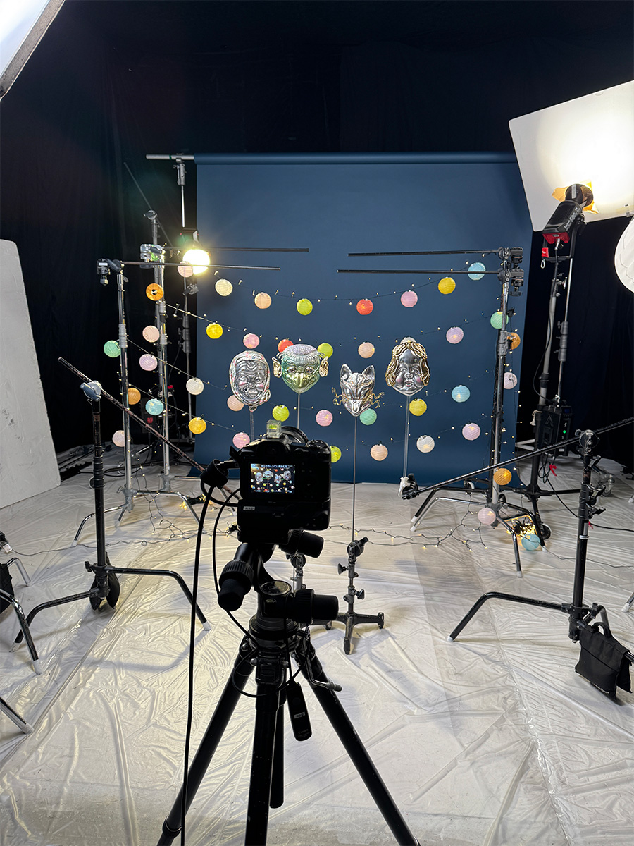縁日のイメージで、背景には小さなライトを仕込んだミニ提灯をたくさん用意しました。