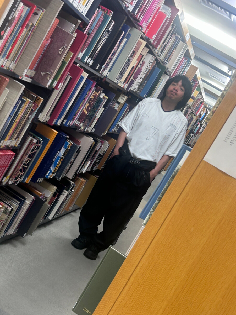 神田さんが学生時代長く過ごしたという文化の図書館でも撮影。文化の図書館は何より書籍が山ほどあり、貴重な資料もたくさんあるので編集部員も日頃から愛用しているのですが、いつも使っている図書館に峯田さんが存在しているのが少し不思議でした(笑)。