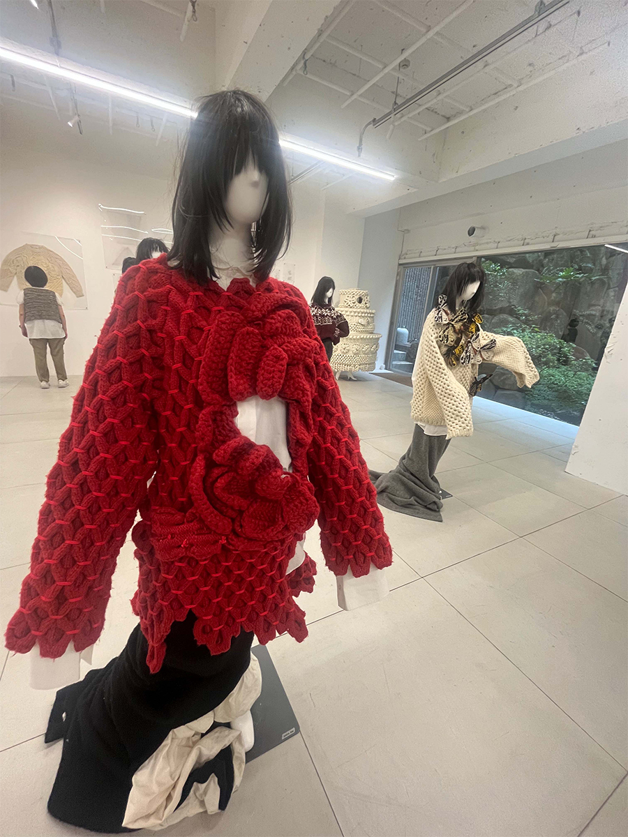 編み図や製図と並ぶアーカイブピースは、ブランドの手仕事の深さと思想を感じさせ、見応えたっぷり。書籍発売前にこうして作品に触れられるのは、とても贅沢な体験でした。