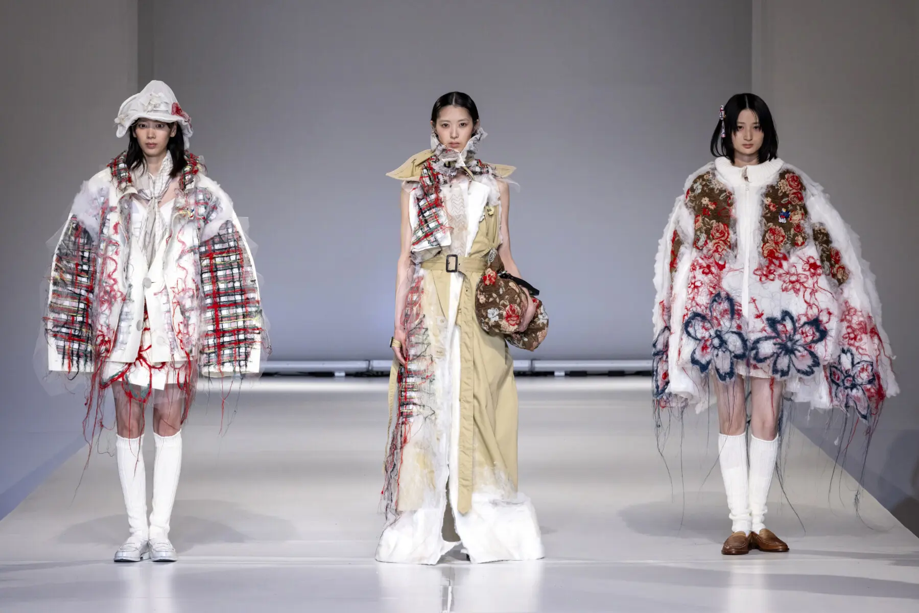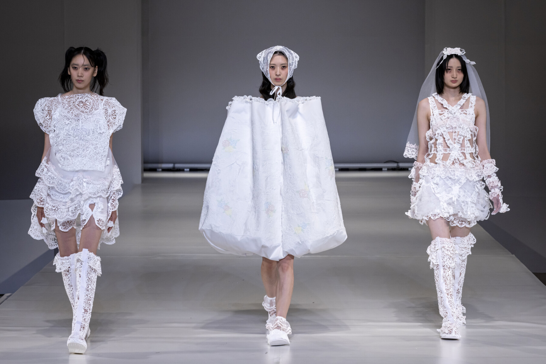 坂部三樹郎先生(MIKIOSAKABEデザイナー)から選抜された石神咲彩さんは、発泡素材を用いてオリジナルレースを制作。驚くべきことに、この緻密で可愛らしいレース模様をすべて手描きでさらっと仕上げているんです!実物を見たとき、その独創的な発想と愛らしいデザインに思わず心を奪われました。現在はフリーランスとして活動し、アイドルへの衣装提供なども行っているとのこと(Instagram:@saaaya_ishigami)。今後の活躍にも注目です。