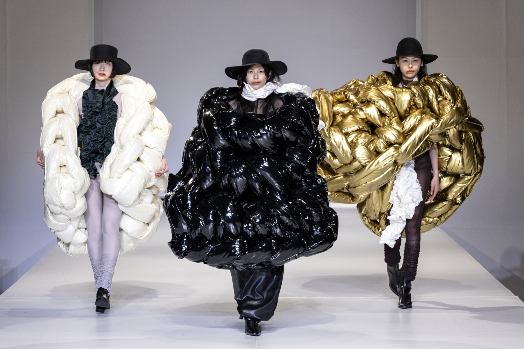 同じく坂部先生から選抜された鎌田早雲さんの作品は、これまでの装苑賞でも前例がないほどの超ビッグシルエット。提出時には、あまりのスケールの大きさに運営スタッフもびっくりしました(笑)。
