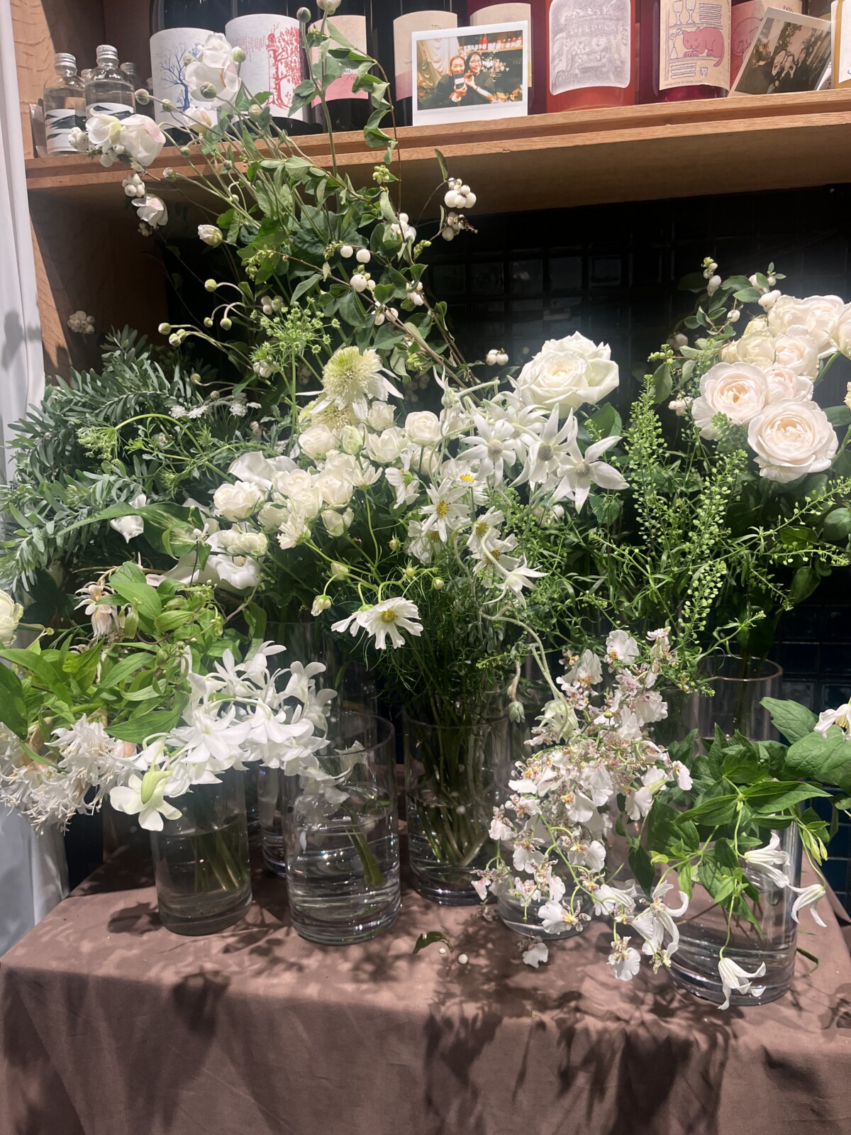 会場は渋谷PARCOの片隅にあるフラワーショップ「THE LITTLE BAR OF FLOWERS」。昼はお花屋さん、夜はワインスタンドとしても人気の、感度の高いおしゃれさんが集う場所です。会場に足を踏み入れると、柔らかな花の香りに包まれて、ふんわりと心が華やぐ空間が広がっていました。