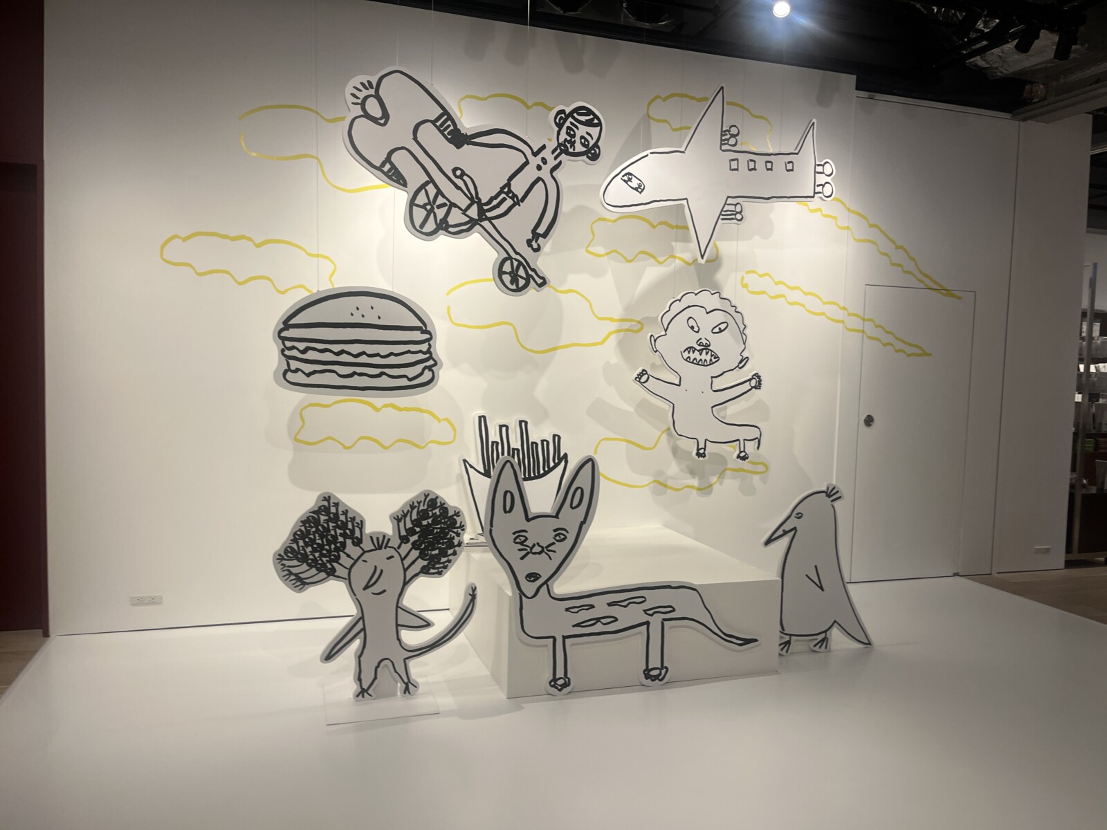 展覧会では、浜田さんが描いた約100点の作品を展示。ユーモアたっぷりの作品群は、見れば見るほど味わい深く、思わず笑顔になります。私のお気に入りは“ナポレオン”。よく見ると足が3本あるんです。そんな自由な発想に感嘆してしまいました。シーソーに子どもが2人乗っている絵も印象的。ぜひ現地で探してみてください。
