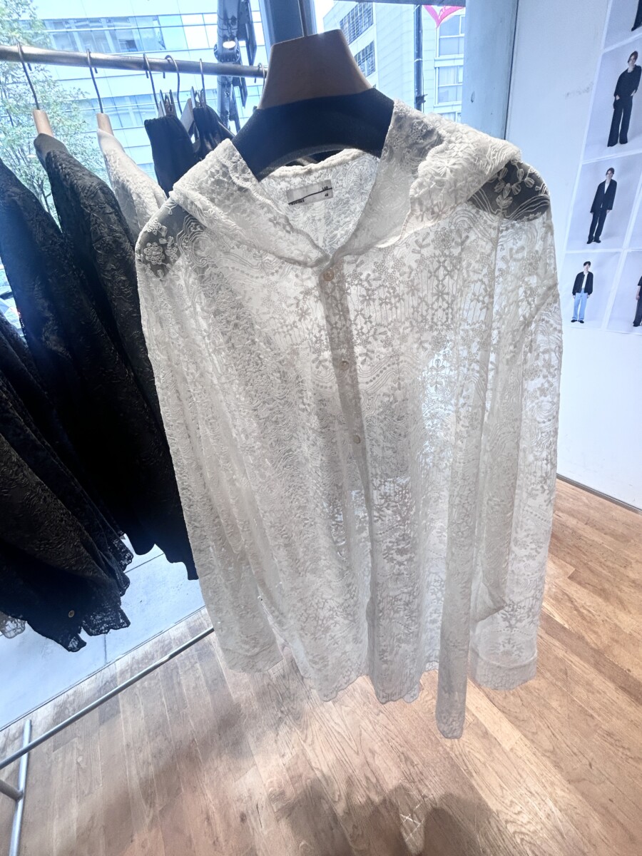 特に、深めのフードがついたシャツ(写真上)は、ベールのように被れるデザインでとってもロマンティック!ジェンダー問わず、一枚でコーディネートをドラマチックに仕上げてくれます。