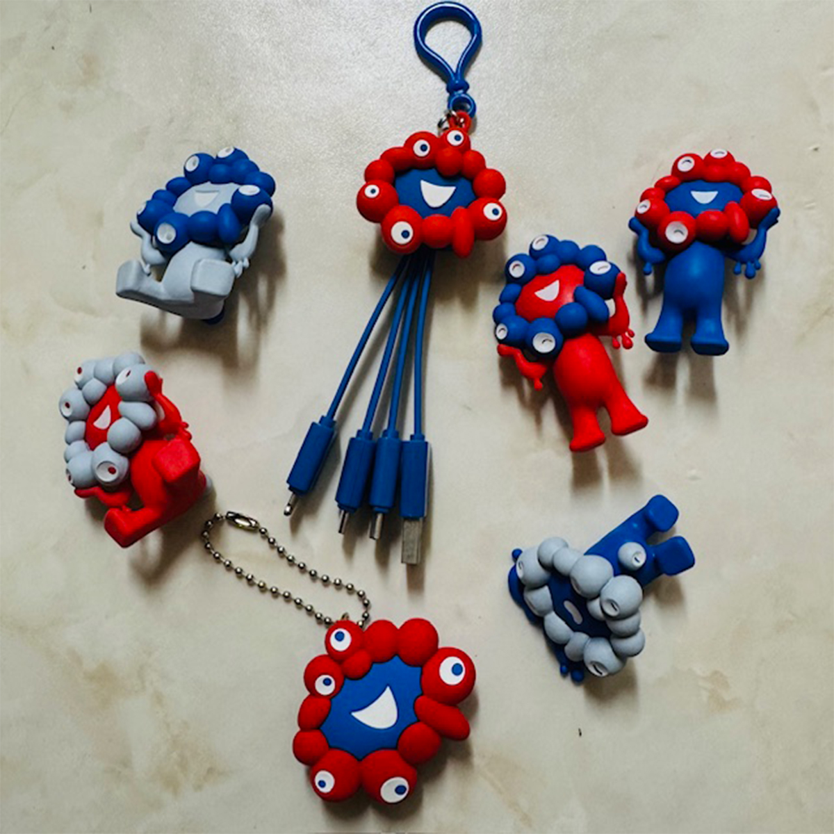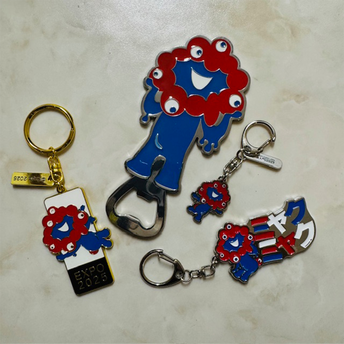 4 立体ミャクミャク。これはガチャガチャの中身。そして、充電プラグ。愛おしい
