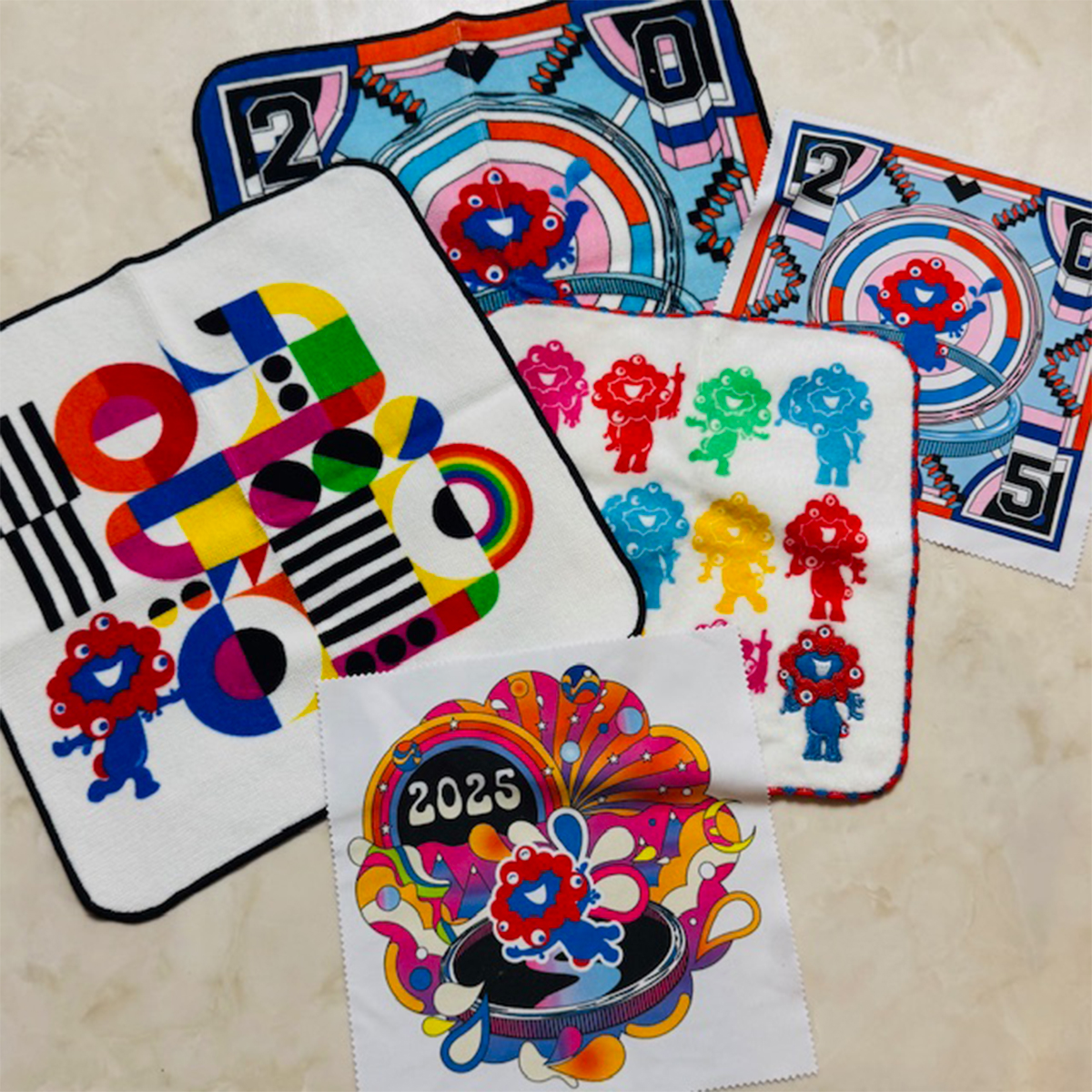 3 ハンドタオルとメガネ拭き。レトロでサイケデザインがもうツボ!