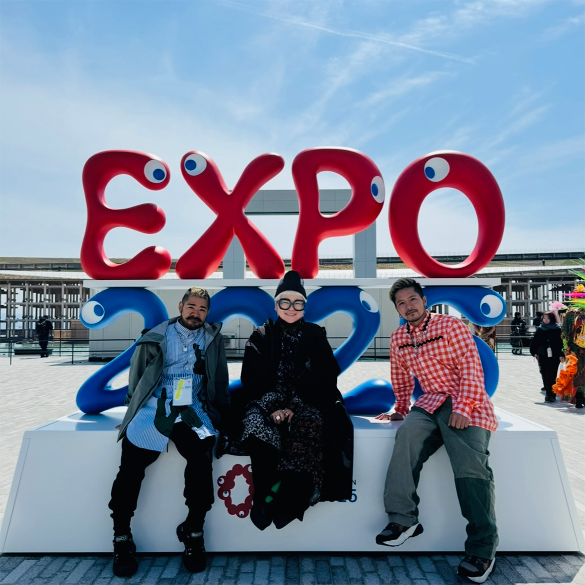2025大阪万博。最高!そしてこれは大切な写真。衣装デザイナーのヒロスミさんと、ヨシくんと万博会場にて。素敵なお仕事にお声がけいただいたことに感謝だし、参加できて本当に幸せな事。