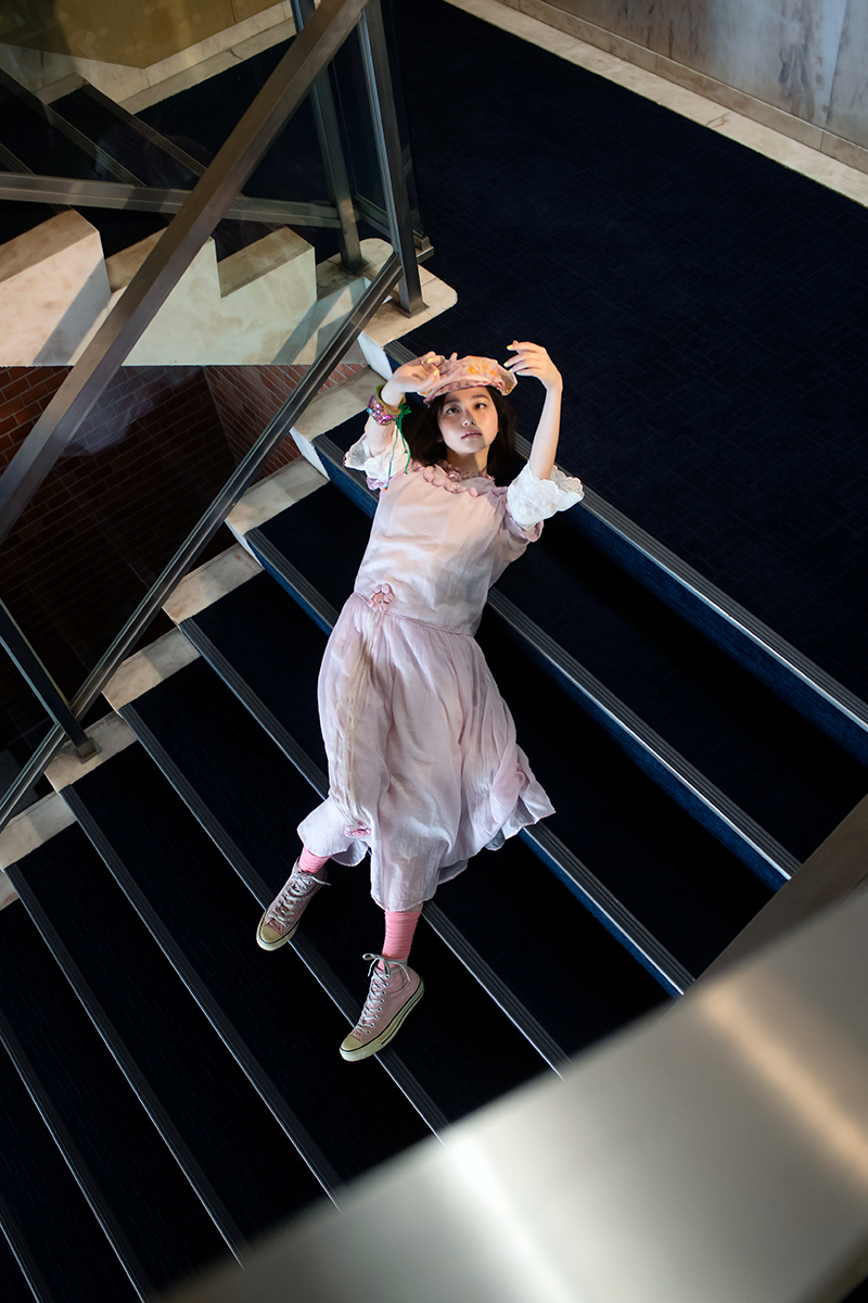 山田杏奈:本当に。いつ作られた服なんだろう、どうしてこんな凝った装飾をしたんだろう……?と、ワンピースを着ながら想いを馳せていました。今の服にはあまりないような、「可愛い」のためだけにつけました! というお花のモチーフが本当に素敵でした。機能性とかではないこうしたお洋服の細部に、わくわくします。