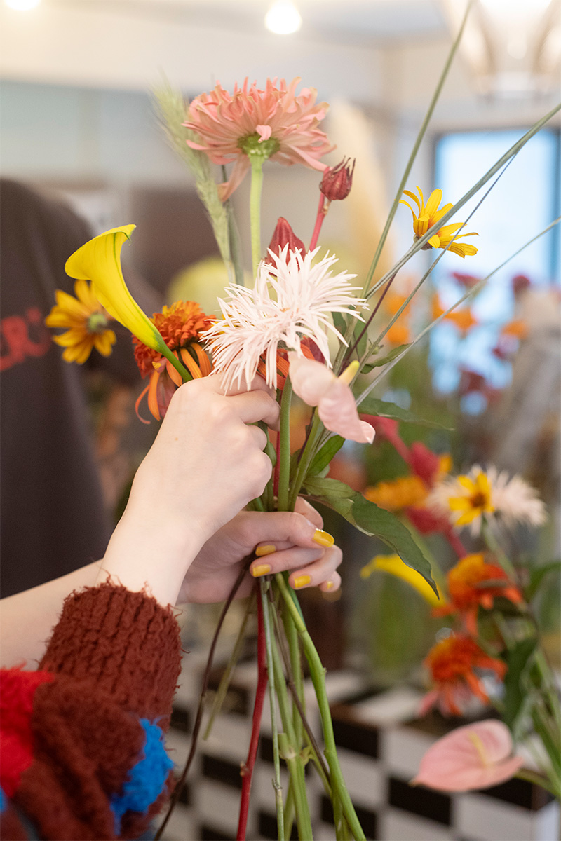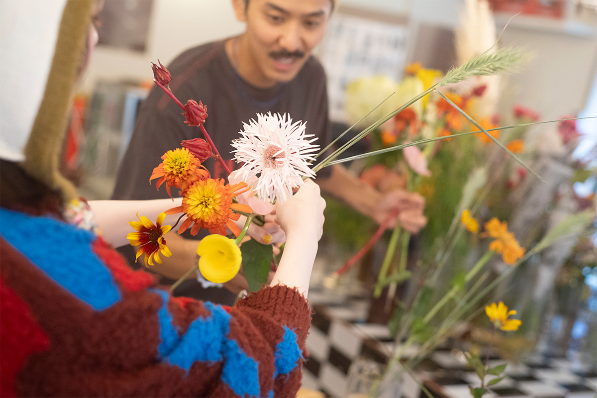 東京の代田橋と中目黒に店舗を構えるフラワーショップ。今回、山田さんが訪れたのは中目黒店。音楽や洋服、友人とのひと時を楽しむように、生活に花を取り入れることを提案する。キュートな内装のお店に、オーナーの中井侃矢(かんや)さんの視点で選ばれた植物が並ぶさまを見るだけでも、一度、足を運ぶ価値あり。下北沢のソーワットヴィンテージが選んだ花器も取り扱い、アパレルやクラフト、アートなどの多彩なポップアップや展示、ワークショップイベントなども行われている風通しの良さも魅力。