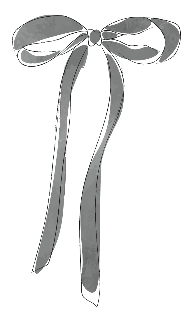 大胆なリボンつきシャツをレイヤードして、ユニークなバランスを作ったスタイル。