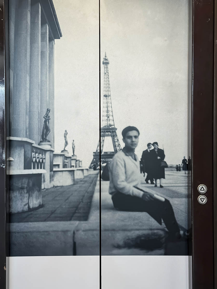 エレベーターのドアには、パリに来たばかりの頃のムッシュ アライアの姿が。