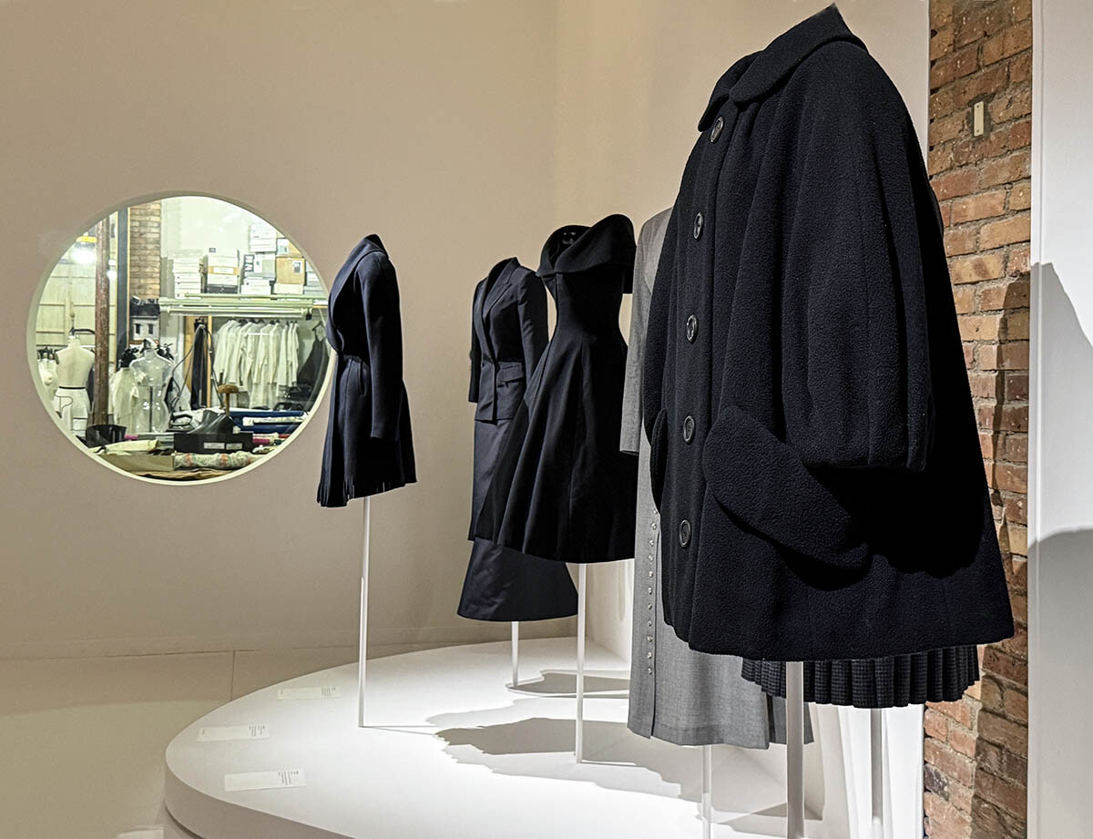 2階の展示室では、円窓から生前のアライアのアトリエを覗くことができる。