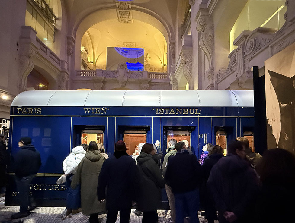 吹き抜けの大ホールには、空に向かって発車するかのようにオリエント急行の模型がそびえる。